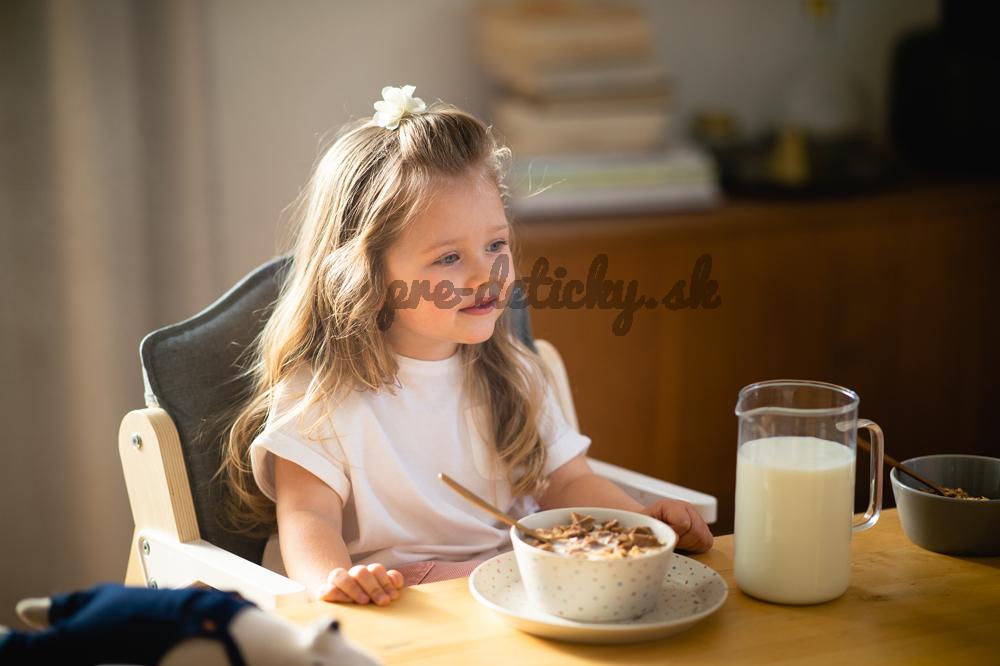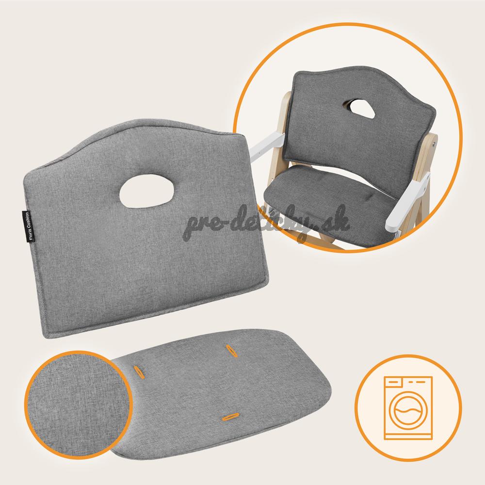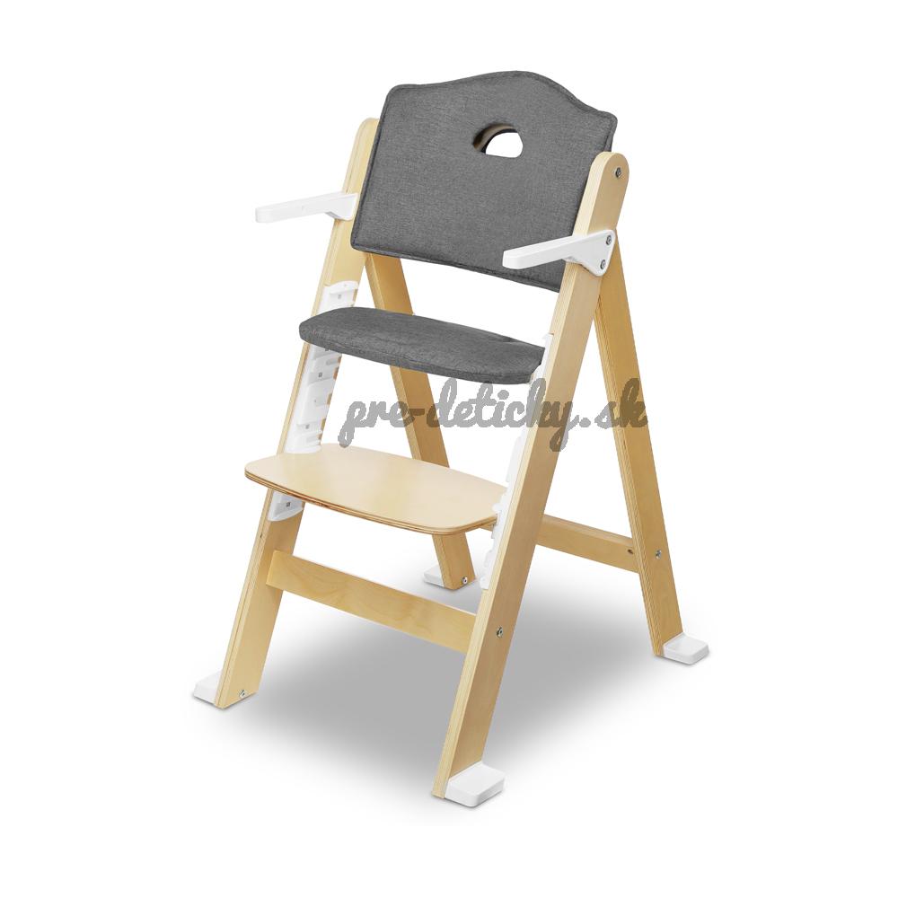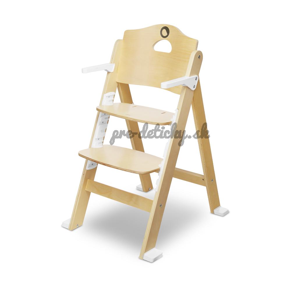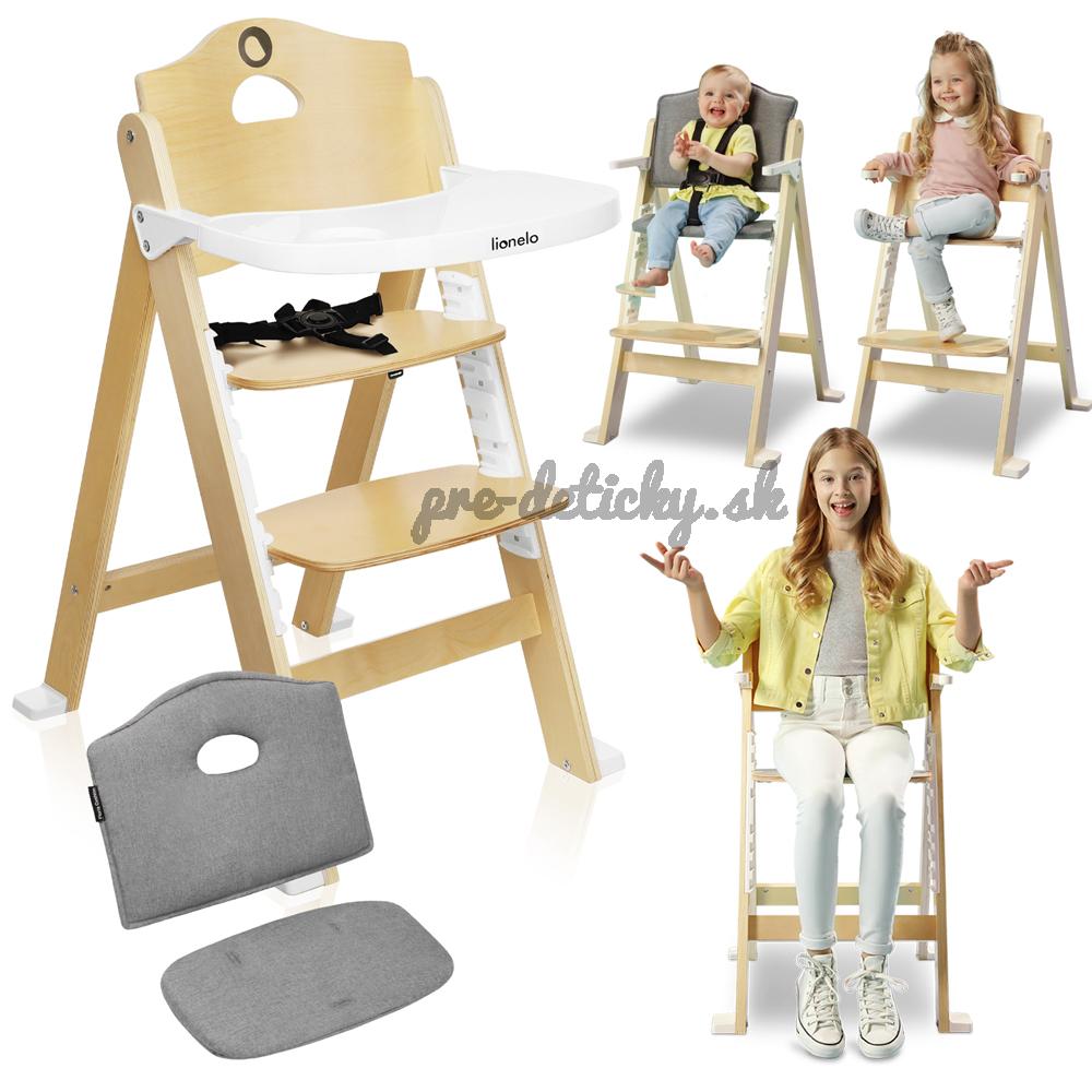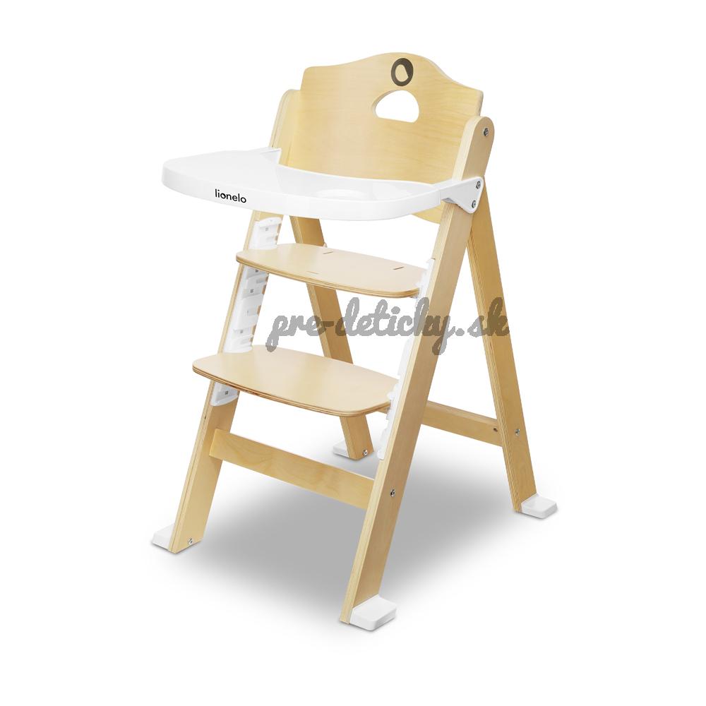 Bezpečná drevená konštrukcia: Päťbodové bezpečnostné pásy zaisťujú stabilnú polohu batoľaťa a odnímateľná opierka nôh poskytuje pevnú oporu pre nohy. Dieťa si tak pri jedle udrží správnu polohu v sede, čo má vplyv na správne fungovanie čriev, ako aj na vývoj rečového aparátu. Veľký podnos vytvára dostatočný priestor na jedlá - ideálna na rozšírenie stravy pomocou metódy BLW. Výrobok je v súlade s európskou normou EN 14988.