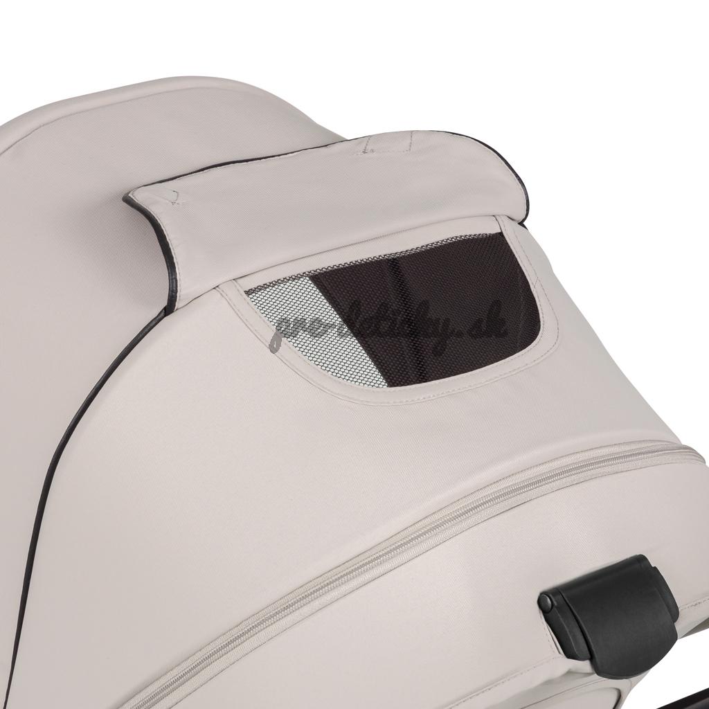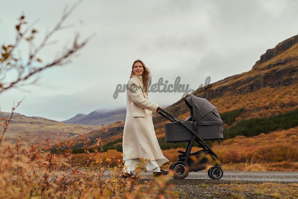 Prémiové tkaniny a vonkajší filter UPF+: Vždy vyzerajú dokonale. Sú vodeodolné, mäkké na dotyk a nekrčia sa, takže kočík vyzerá elegantne a esteticky každý deň. Filter UPF+ na kabíne je aplikovaný zvonku, takže nebolo nutné používať ďalšiu podšívku.