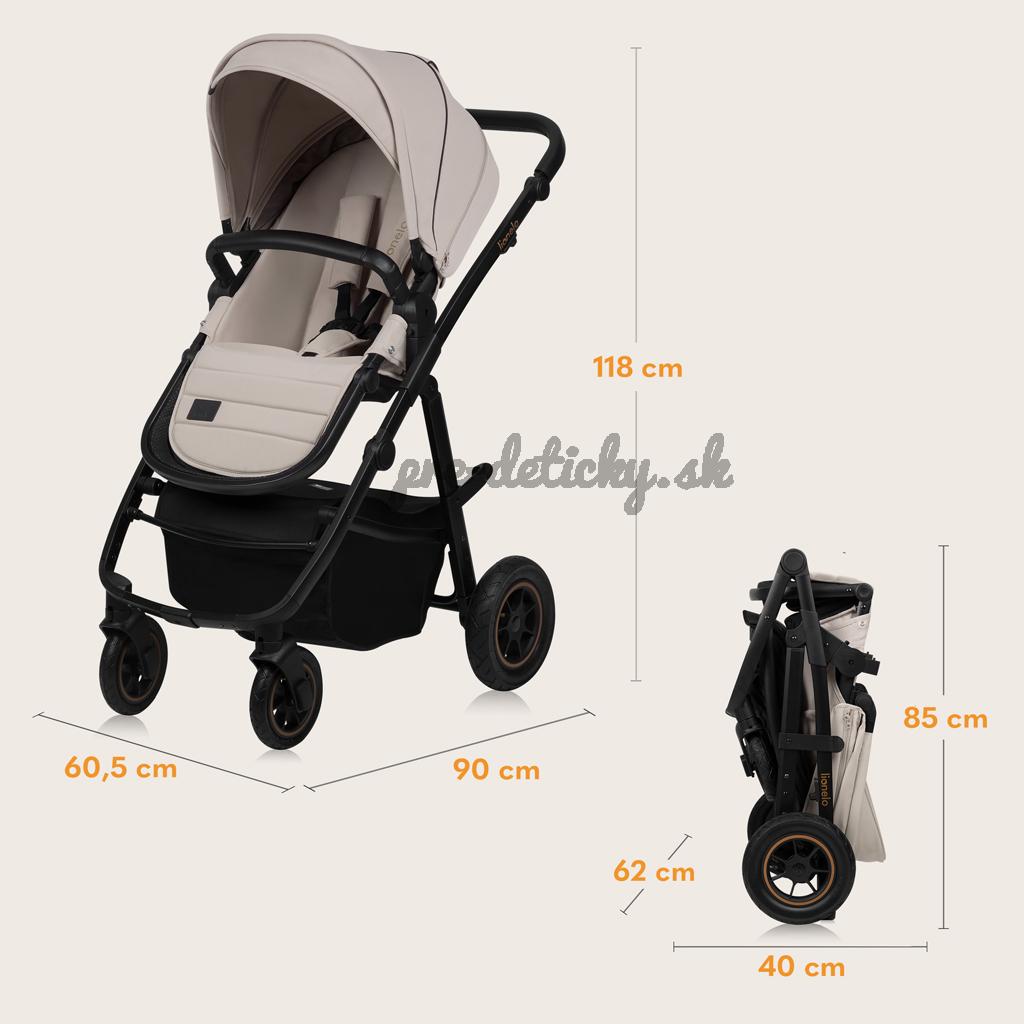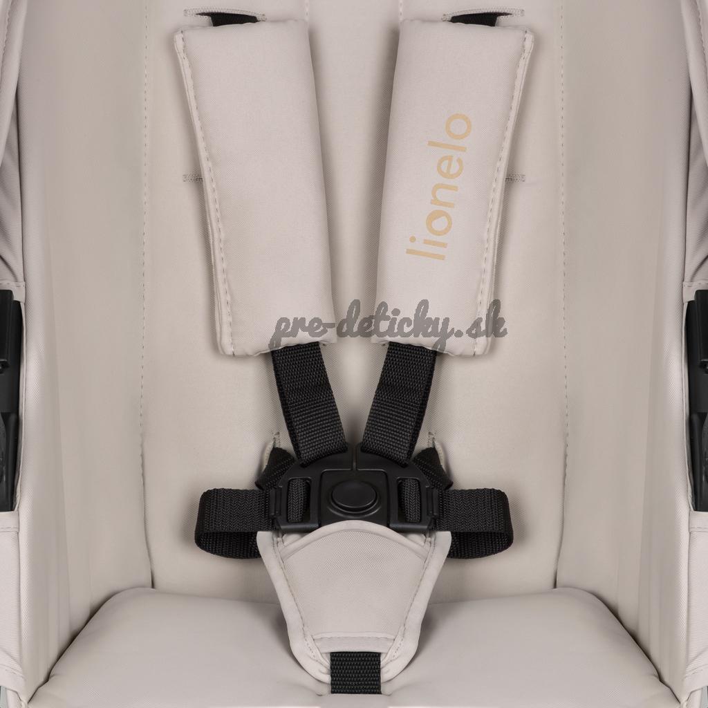Autosedačka Lionelo Astrid i-Size s ADAC: Súčasťou kočíka je aj detská autosedačka Astrid i-Size s certifikáciou ADAC. Spiace batoľa je možné v autosedačke/nosítku vybrať z auta a autosedačku možno ľahko pripnúť k podvozku kočíka, aby ste sa dostali domov bez nutnosti prebudenia dieťaťa.