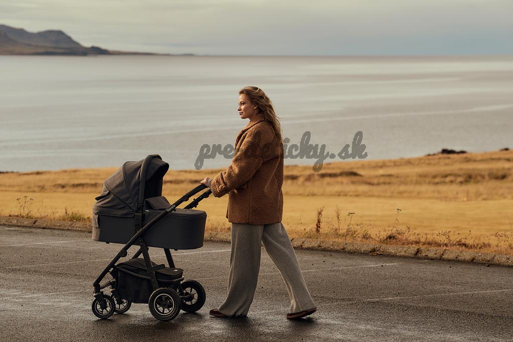 Prémiové tkaniny a vonkajší filter UPF+: Vždy vyzerajú dokonale. Sú vodeodolné, mäkké na dotyk a nekrčia sa, takže kočík vyzerá elegantne a esteticky každý deň. Filter UPF+ na kabíne je aplikovaný zvonku, takže nebolo nutné používať ďalšiu podšívku.