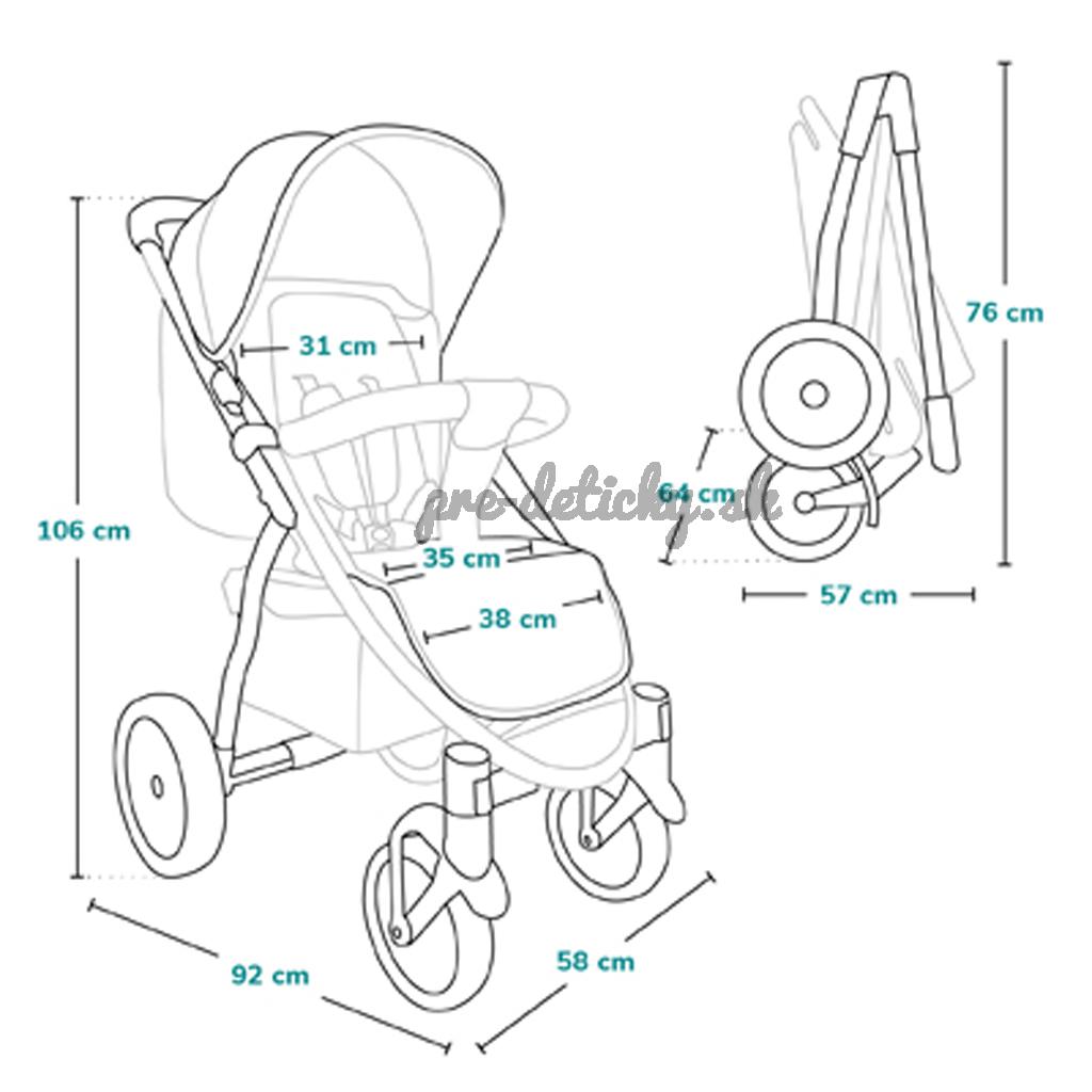 - rozmery zloženého kočíka: 76 v x 57 š x 64 d(cm)