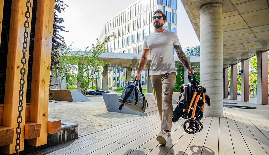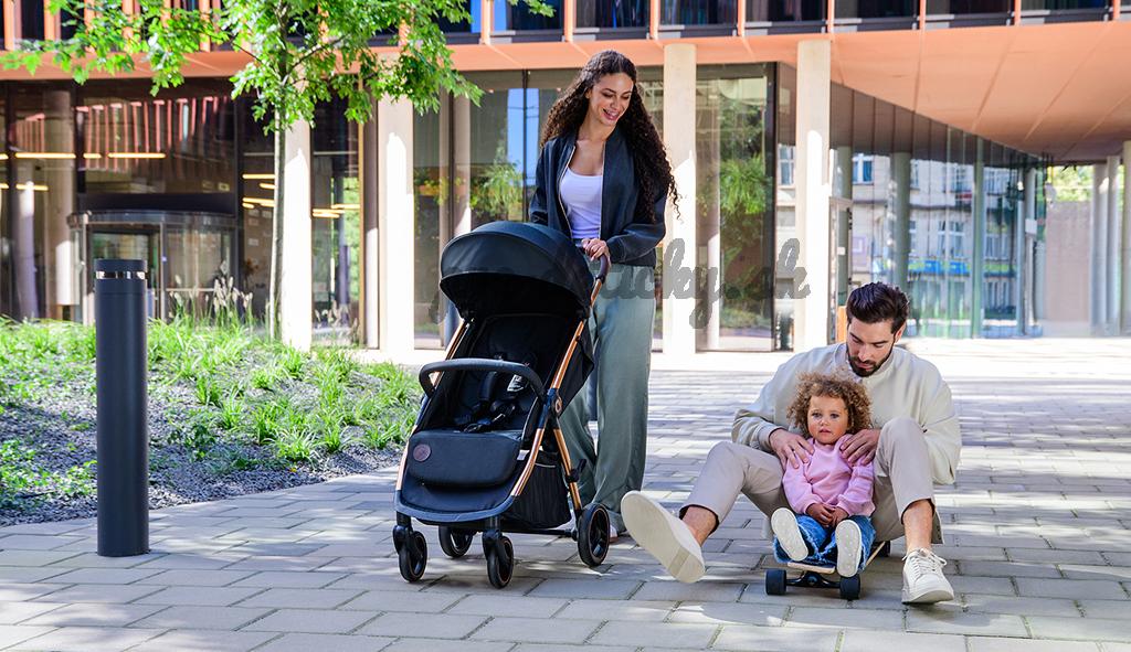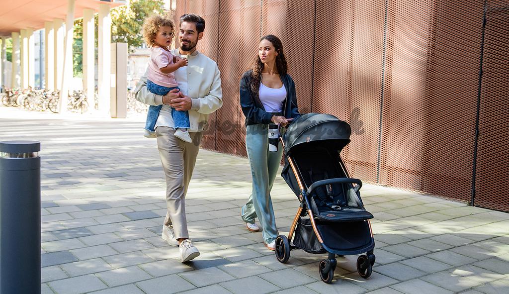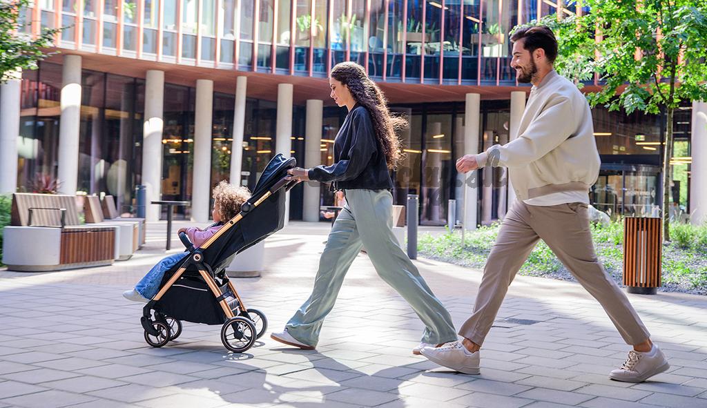 Jednoduché skladanie: Kočík je vybavený systémom auto-folding, čo znamená, že po stlačení tlačidla a uvoľnení poistky sa športový kočík automaticky zloží do kompaktnej veľkosti. Všetko sa vykonáva jednou rukou.