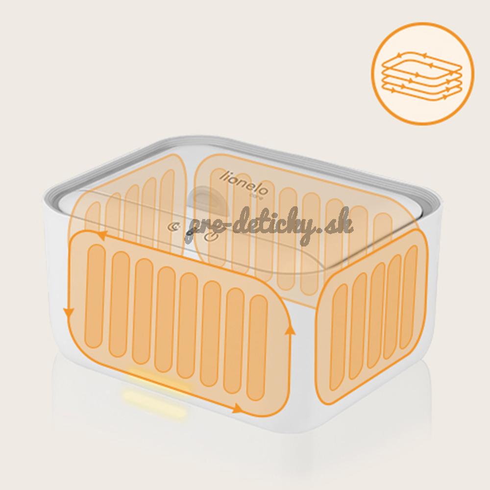Lionelo BabyBliss je moderný ohrievač vreckoviek, vďaka ktorému bude každá výmena plienky pre dieťa oveľa príjemnejšia. Vďaka použitej technológii surround heating ohrievač účinne udržuje nastavenú teplotu dokonca aj niekoľko hodín a zároveň šetrí energiu. Tri stupne ohrievania – 35 °C, 45 °C a 55 °C umožňujú rodičom nastaviť teplotu vreckoviek podľa potrieb dieťaťa a aktuálnych podmienok.