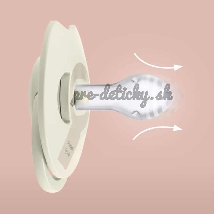 Tvar gumičky cumlíka je symetrický, inšpirovaný tvarom prsnej bradavky, aby vášmu bábätku poskytol známy pocit.