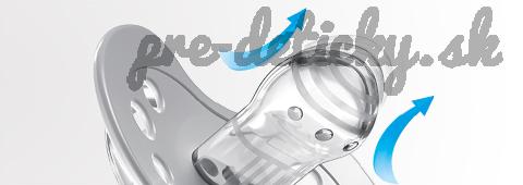 Umožňuje dieťaťu ľahko dýchať nosom; bezpečný materiál - neobsahuje bisfenol A.