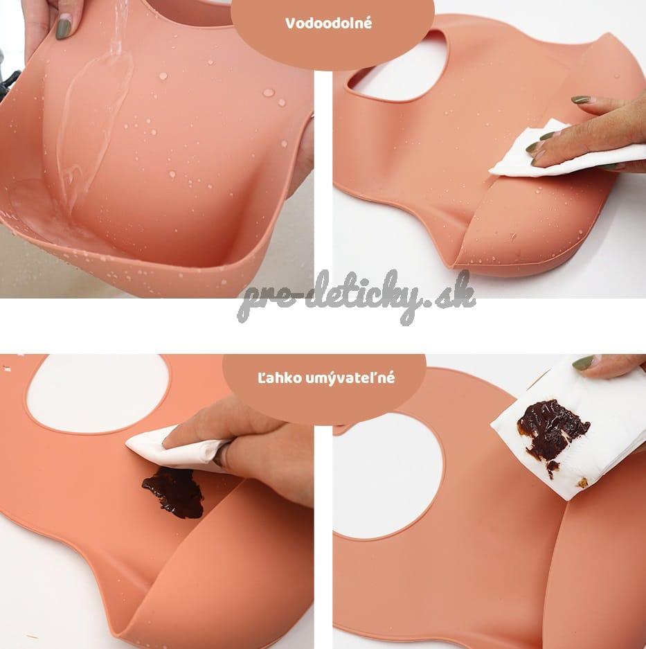 Podbradník: Tvar podbradníka Martons bol konštruovaný tak, aby sa dalo používať jednoducho. Slúži na zachytávanie omrviniek a zbytok jedál, čo je bežne okolo detí.Nato slúži veľké, flexibilné, pevné a hlboké predné vrecko. Použitie: Chyťte podbradník Martons a rozopnite ho na hornej časti, umiestnite ho okolu krku Vášho dieťaťa a zapnite ho späť.