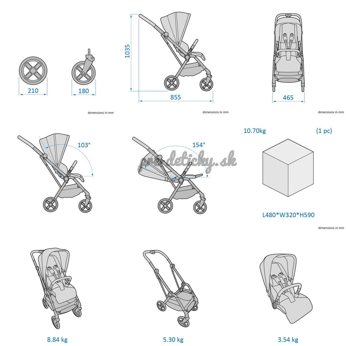 Rozmery zloženého kočíka: 58,5 x 31 x 46 cm