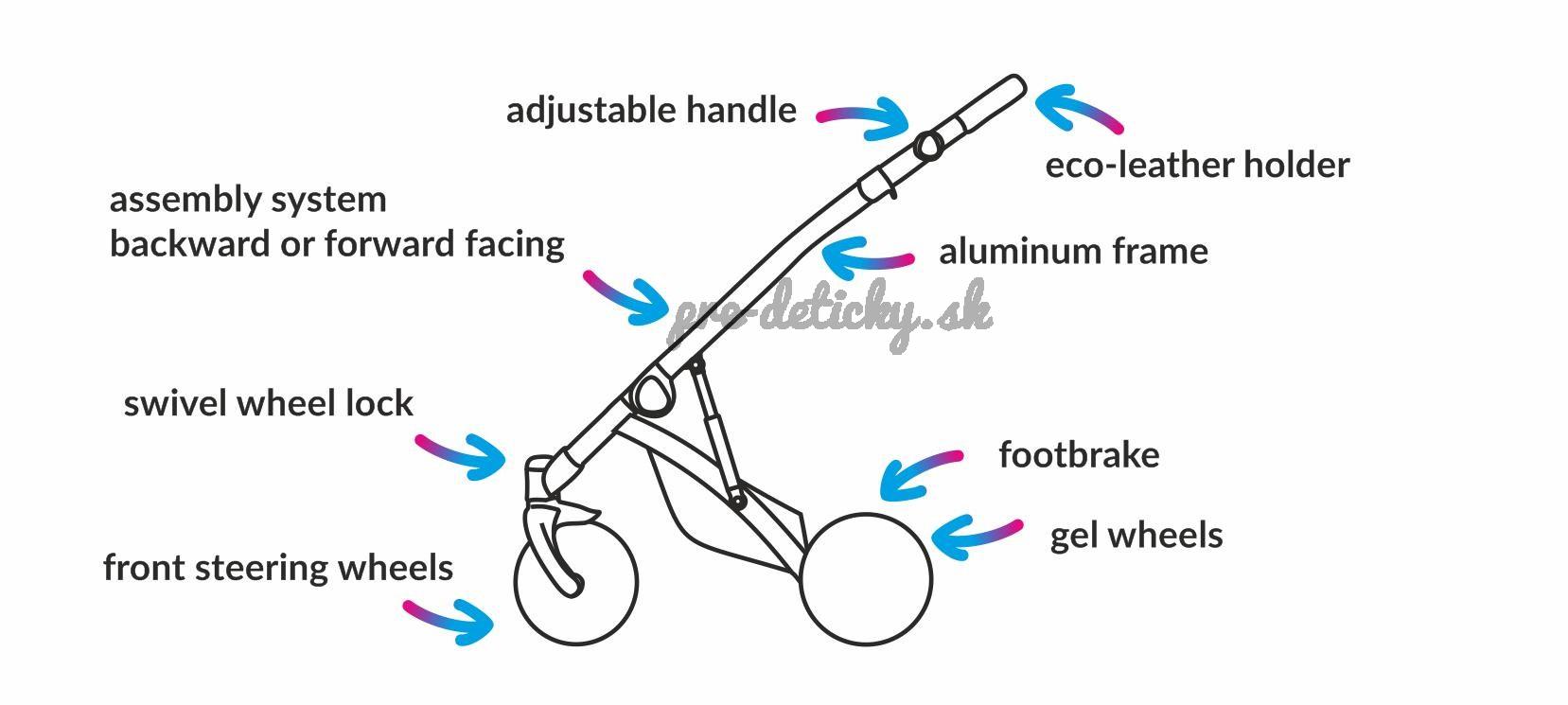 - konštrukcia kočíka je vyrobená z kvalitných materiálov, je pevná a odľahčená