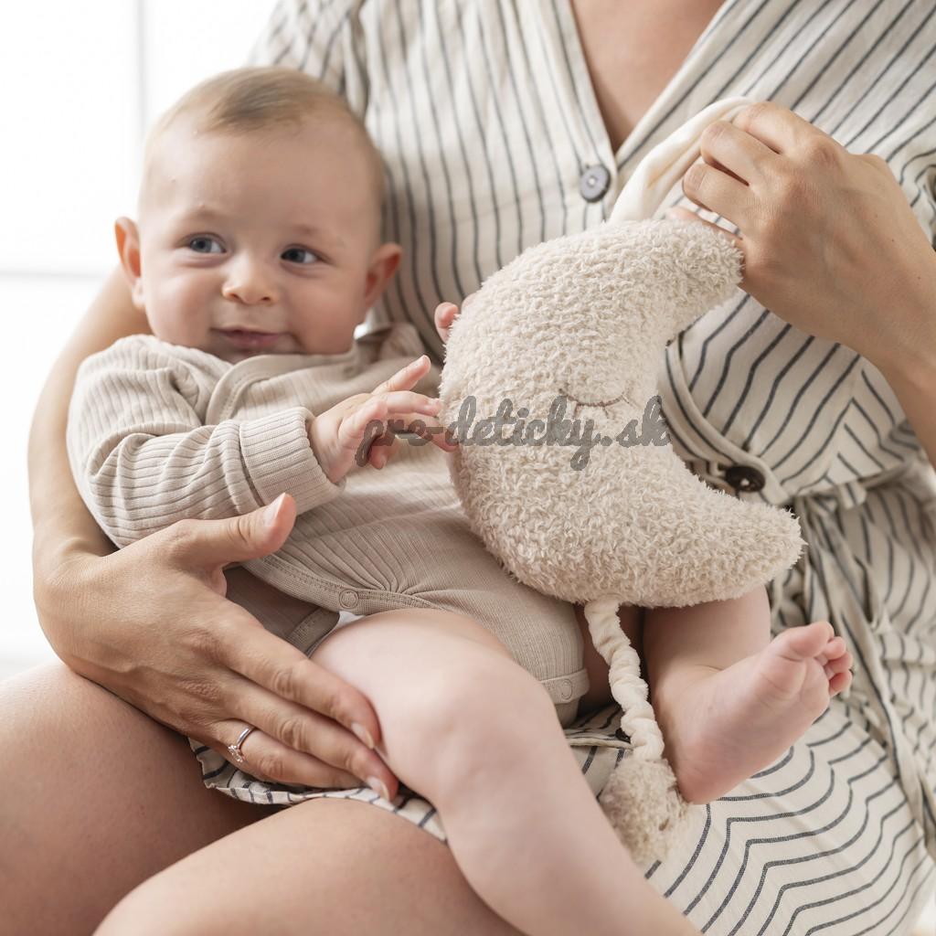 Mäkký a hebký kožúšok robí tohto plyšáčika mimoriadne príjemným na objímanie a držanie – ideálny kamarát na zaspávanie i túlenie.