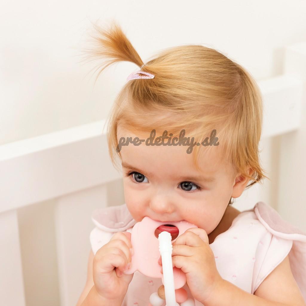 Silikónová hryzačka zložená z troch rôznych častí zmierni bolesť pri prerezávaní sa prvých zúbkov. Môže byť použitá aj ako jednoduchá hrkálka a tiež vďaka svojmu tvaru a dizajnu na rozvoj motorických zručností malých ručičiek. Krásny decentný dizajn.Vhodné od 4 mesiacov.
