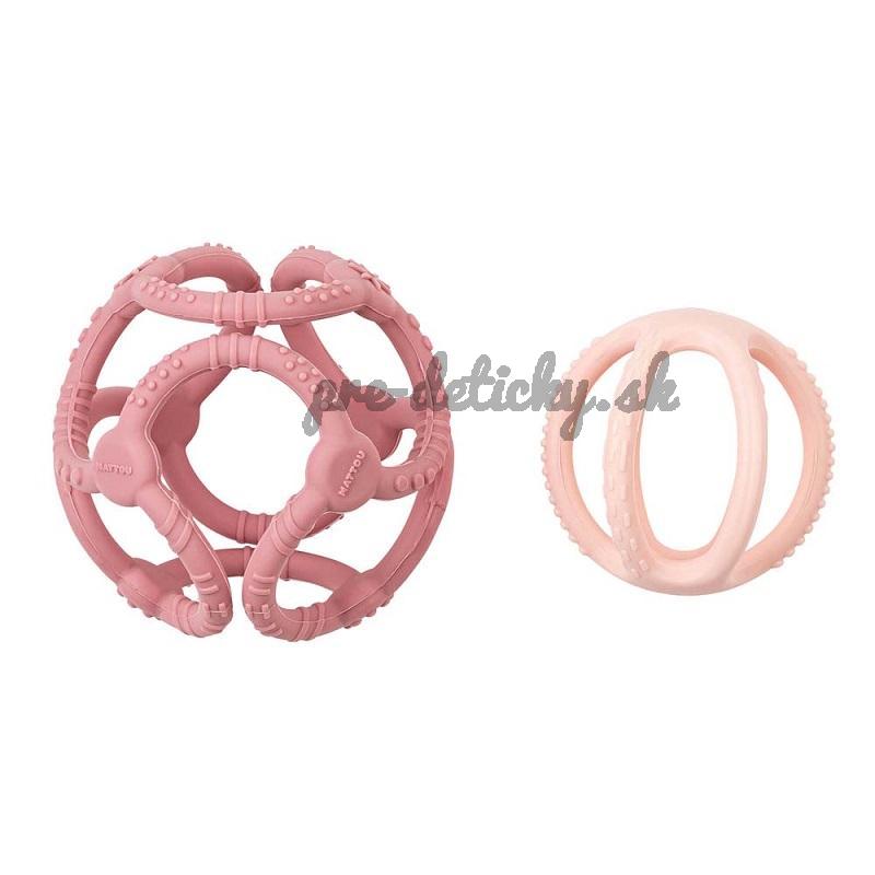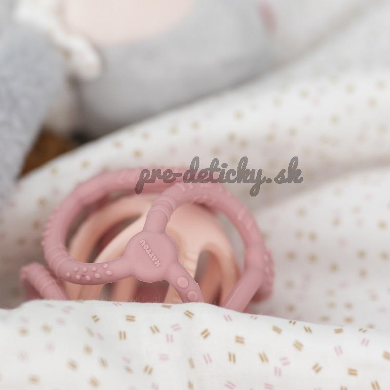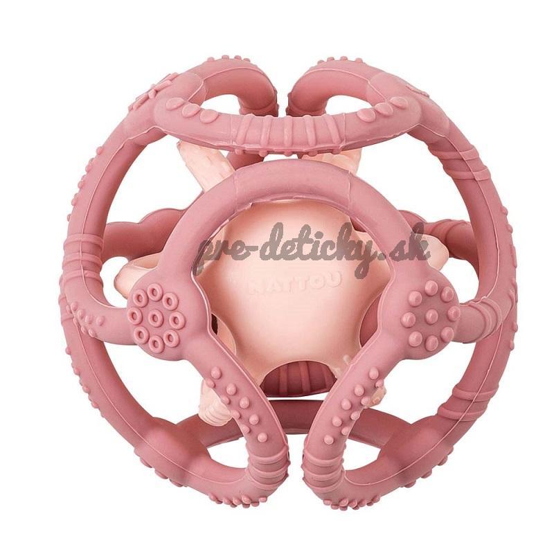 NATTOU Hryzačka silikónová lopta 2v1 bez BPA 10 cm ružová