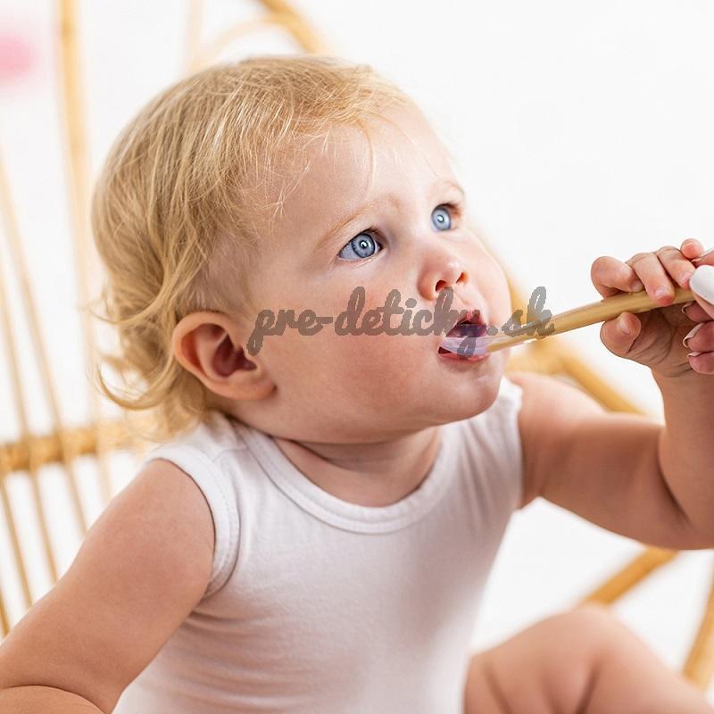 - Vyrobené zo 100% silikónu špeciálne upraveného tak, aby nedráždili krehké ďasná dieťaťa vďaka extra mäkkej a pružnej silikónovej špičke.