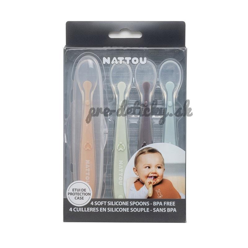 Set 4 lyžičiek od Nattou z mäkkého a ohybného silikónu, ktoré zabezpečujú jednoduchšie stravovanie pre vaše dieťa. Lyžičky sú vďaka mäkkosti a flexibilite šetrné k ďasnám.