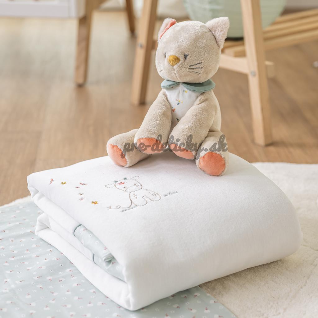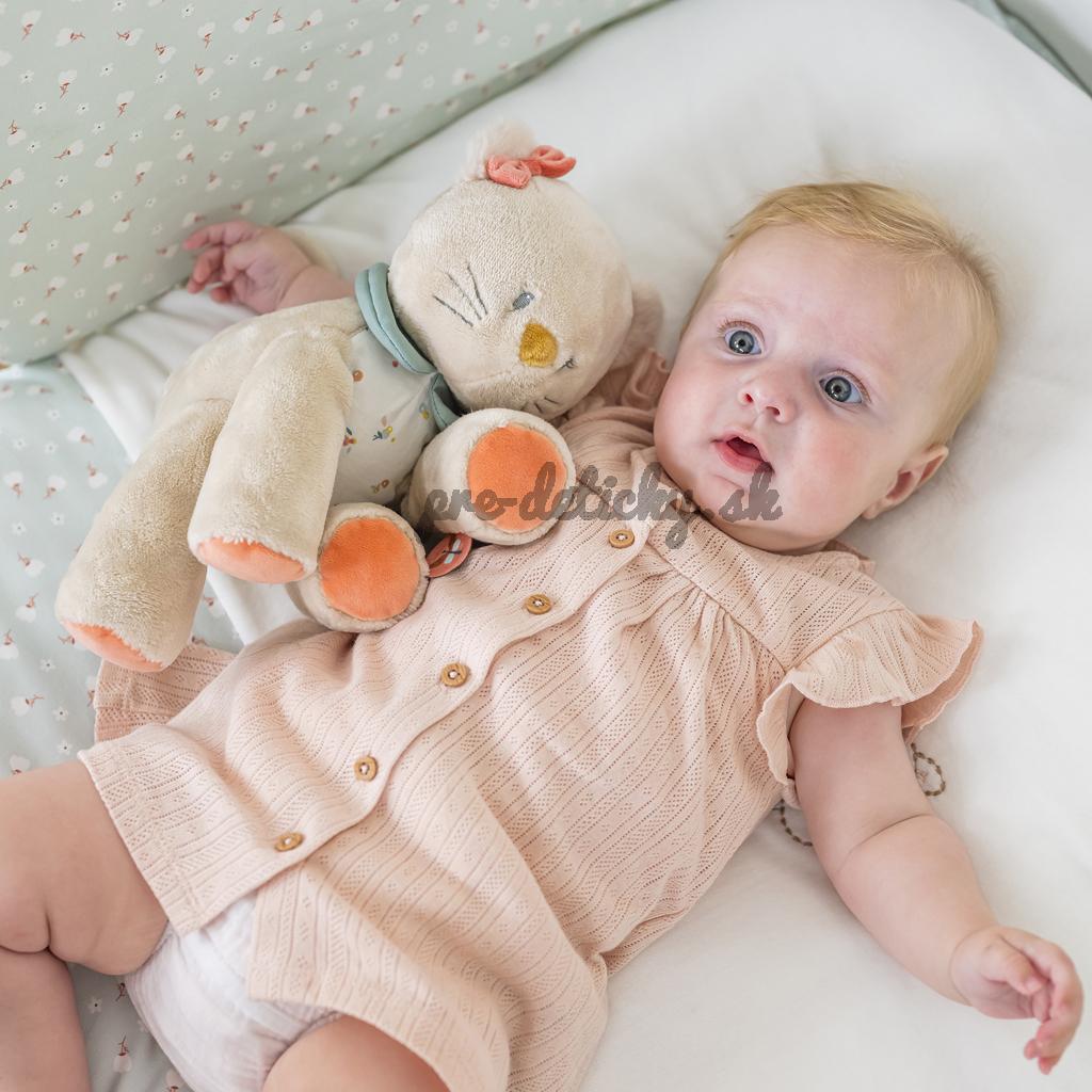 Krásna pusinka vyrobená z polyesteru a bavlny, ktorá je príjemná a stimuluje hmat dieťaťa.