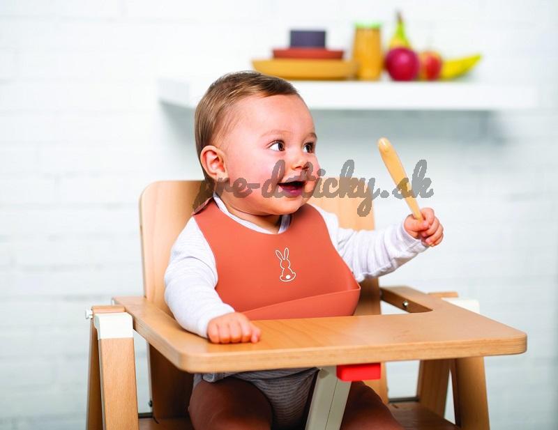 Podbradník Nattou vyrobený z pružného silikónu s motívom roztomilých králikov a praktickou zbernou časťou zabezpečí kŕmenie a jedenie vášho dieťatka bez zbytočného stresu z neporiadku .
