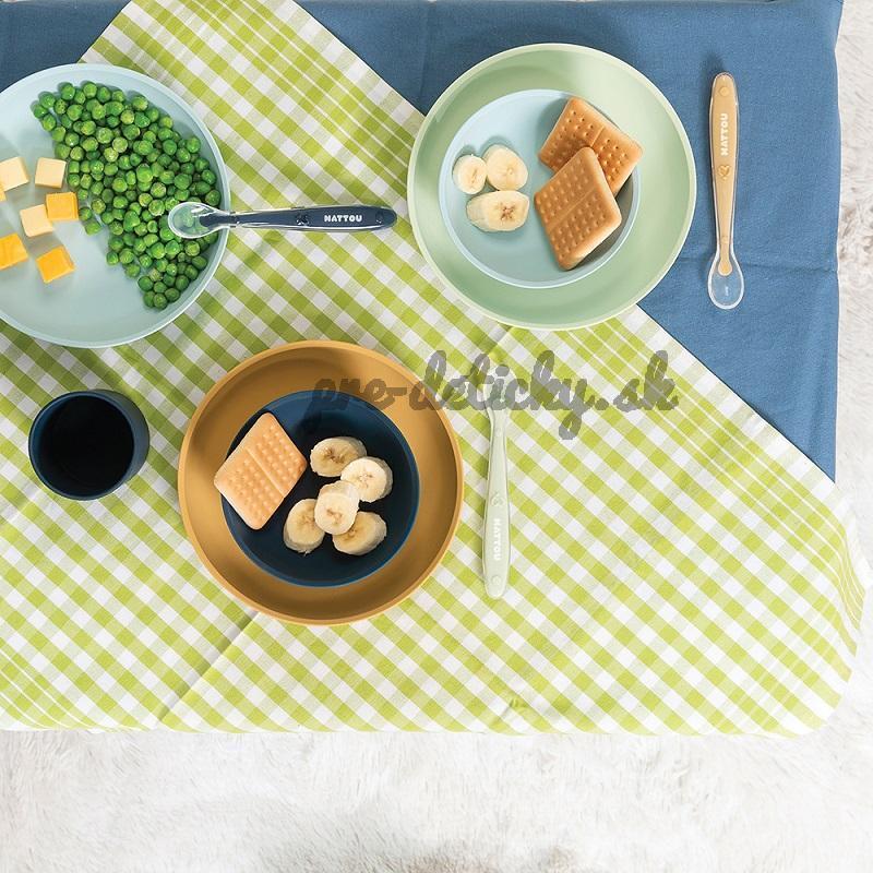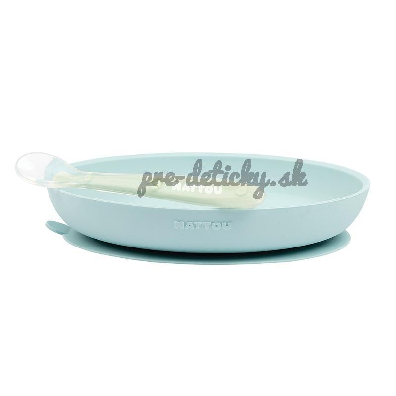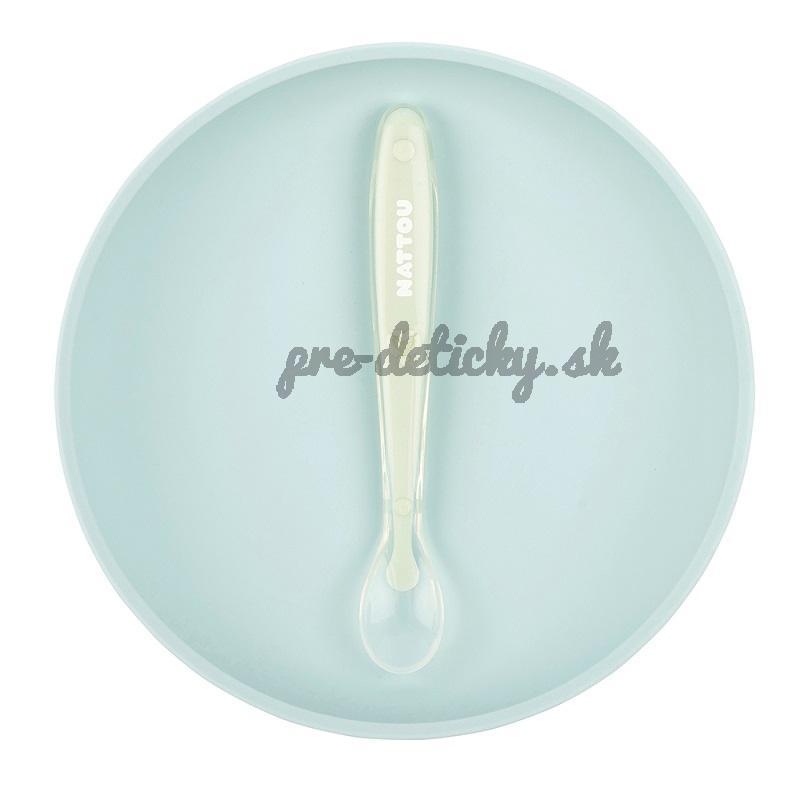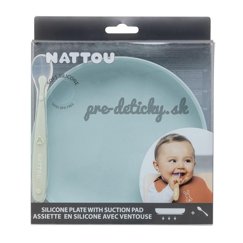 NATTOU Set jedálenský silikonový 2 ks tanier a lyžička mint bez BPA