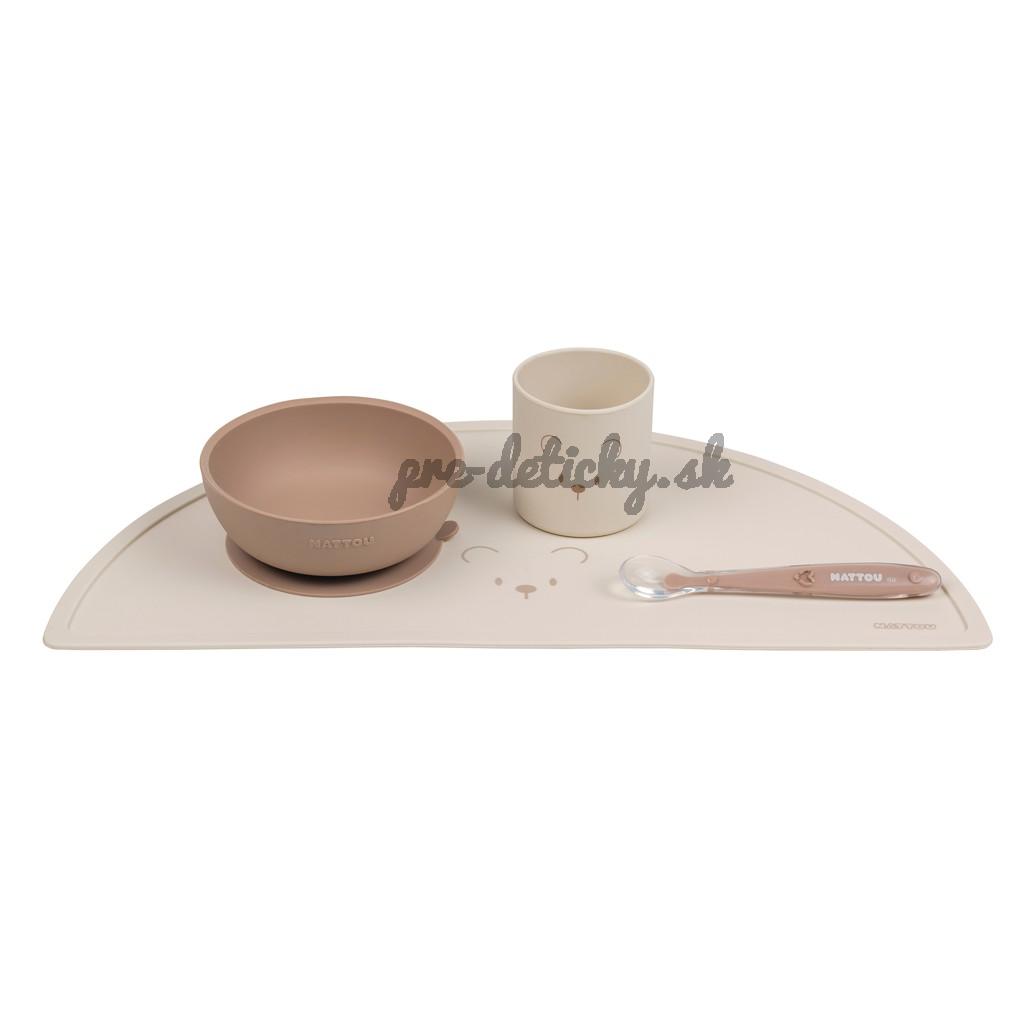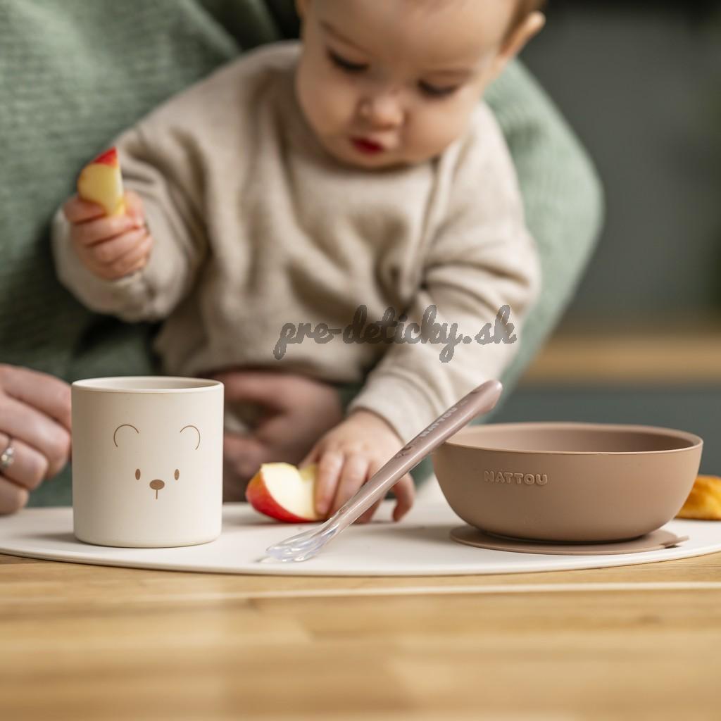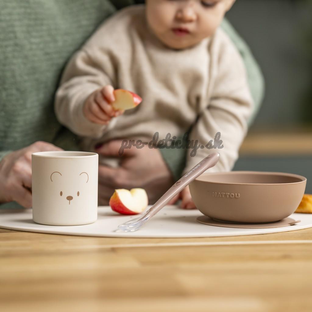 NATTOU Set jedálenský silikónový 4 ks, natural
