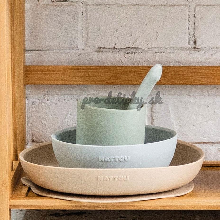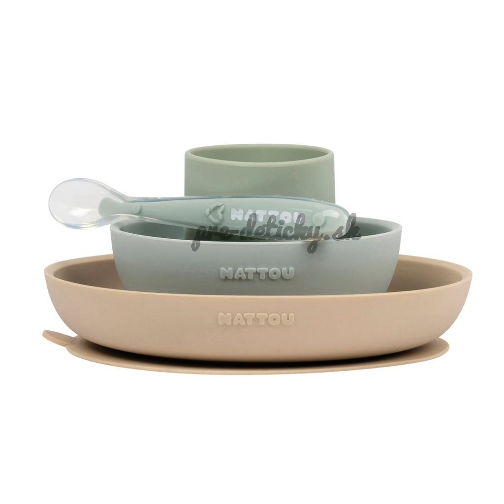 NATTOU Set jedálenský silikónový 4 ks pieskovo-zelený bez BPA