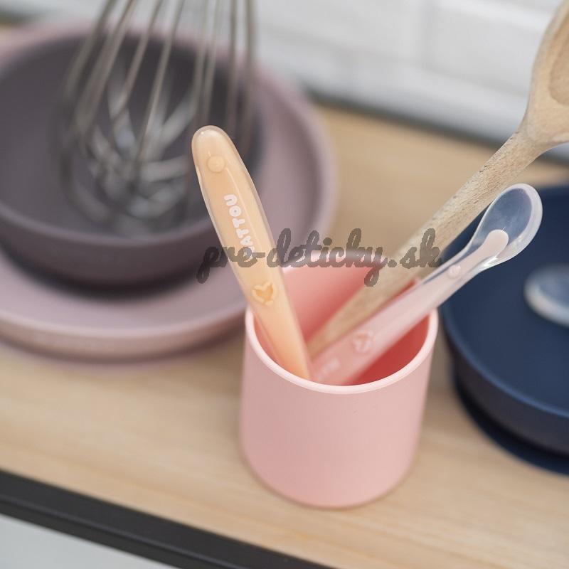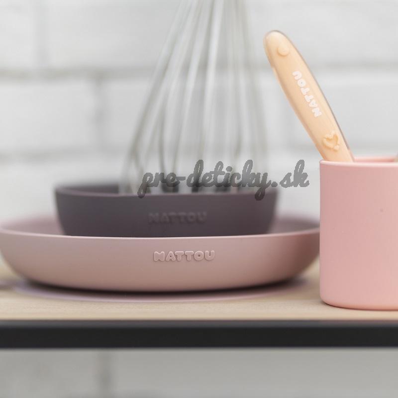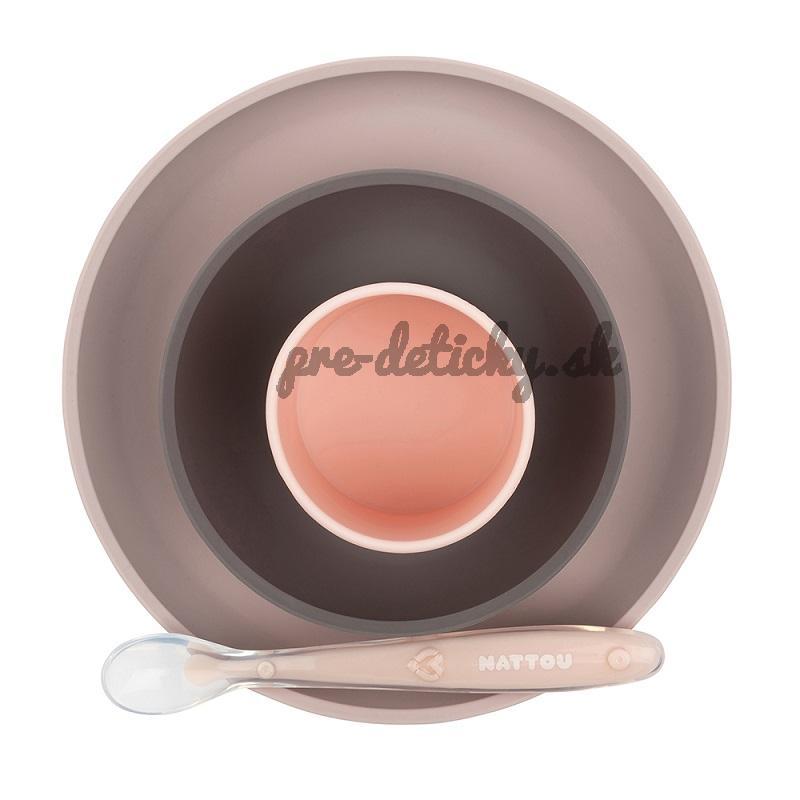 NATTOU Set jedálenský silikonový 4 ks ružovo-fialový bez BPA