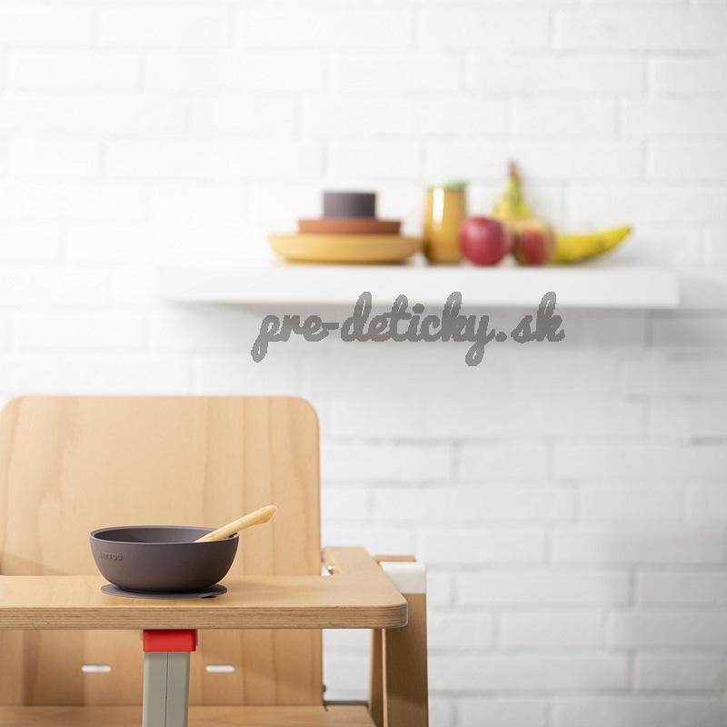 - Tanierik a miska obsahujú prísavku, ktorá prilieha k povrchu stola alebo detskej jedálenskej stoličky (povrch musí byť čistý, aby sa prísavka správne pripevnila).