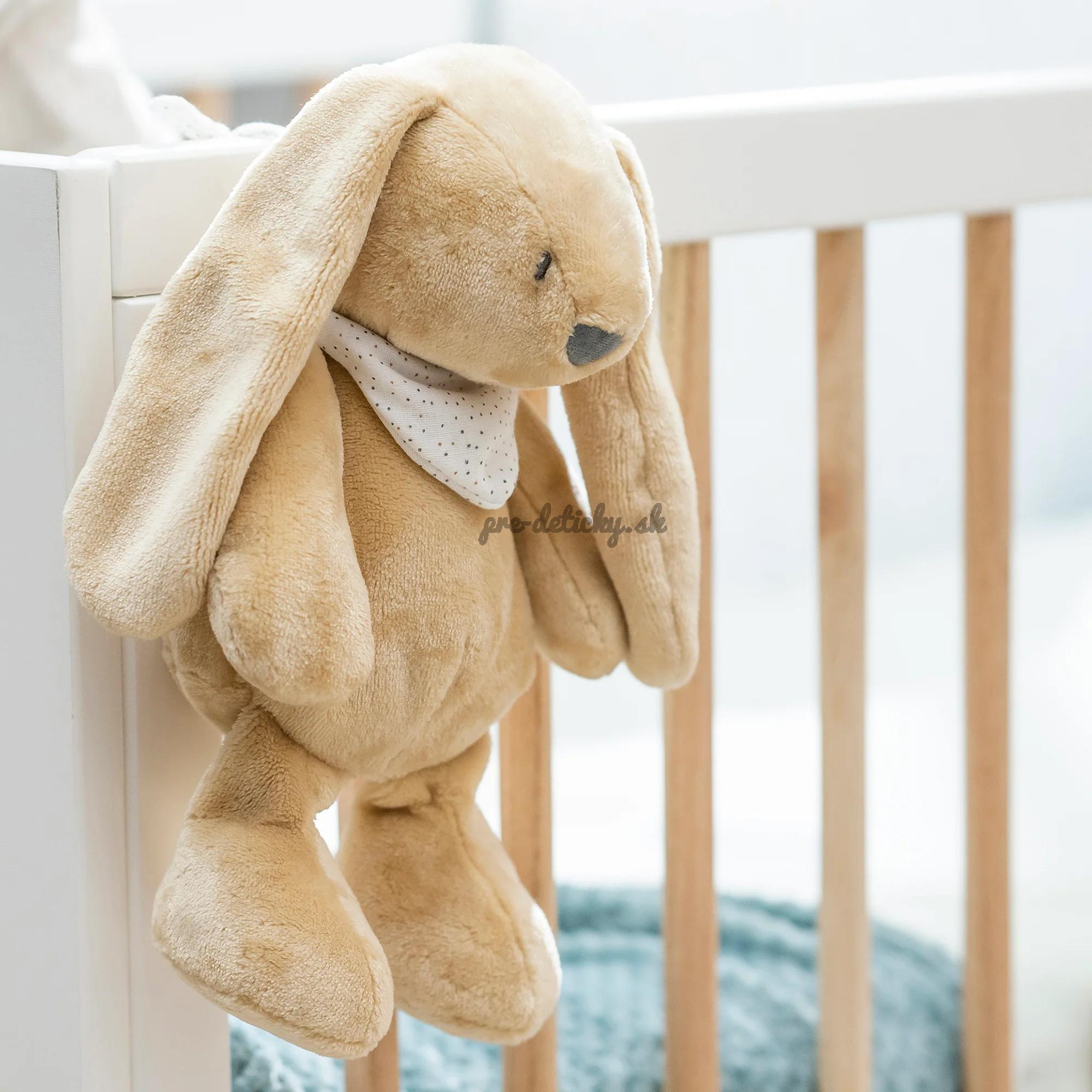 Prítulná plyšová hračka na spanie Nattou v tvare zajačika s vyšívanou tváričkou a jemným podbradníkom.