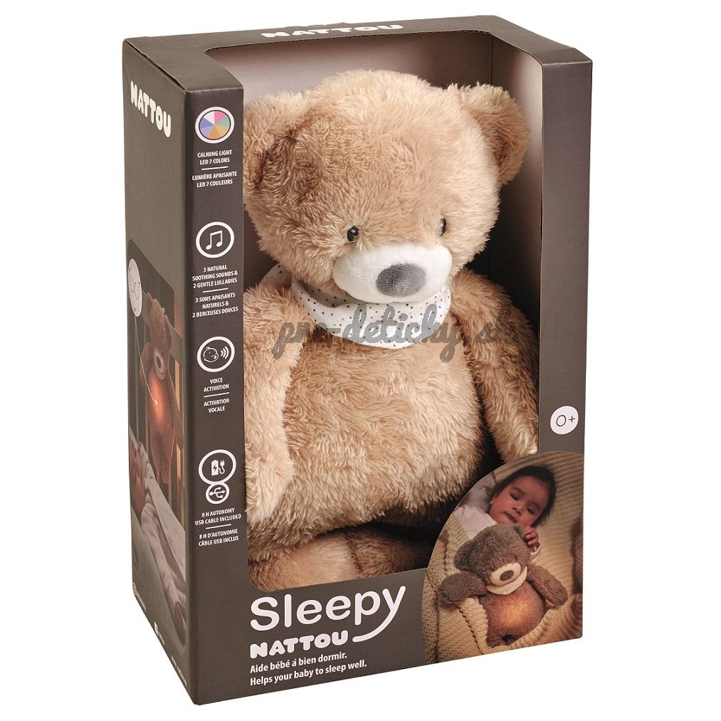 Zajačik na spanie Nattou je krásnej mäkkej kvality s príjemnou výplňou. Spiaci zajačik má v brušku svetielko, ktoré sa môže meniť medzi siedmimi farbami a zvukom, s bielym šumom, morom, tlkotom srdca a dvoma upokojujúcimi uspávankami, ktoré pomáhajú zabezpečiť pokojný spánok. Zvuky spiaceho zajačika sa aktivujú automaticky, keď započuje plač dieťaťa a zvuky automaticky prestanú po 15 minútach. Svetlo spiaceho zajačika vychádza z LED diódy v brušku, takže svetlo je tlmené textíliou zajačika a neprehrieva sa, teda svetlo môže bez problémov svietiť celú noc.