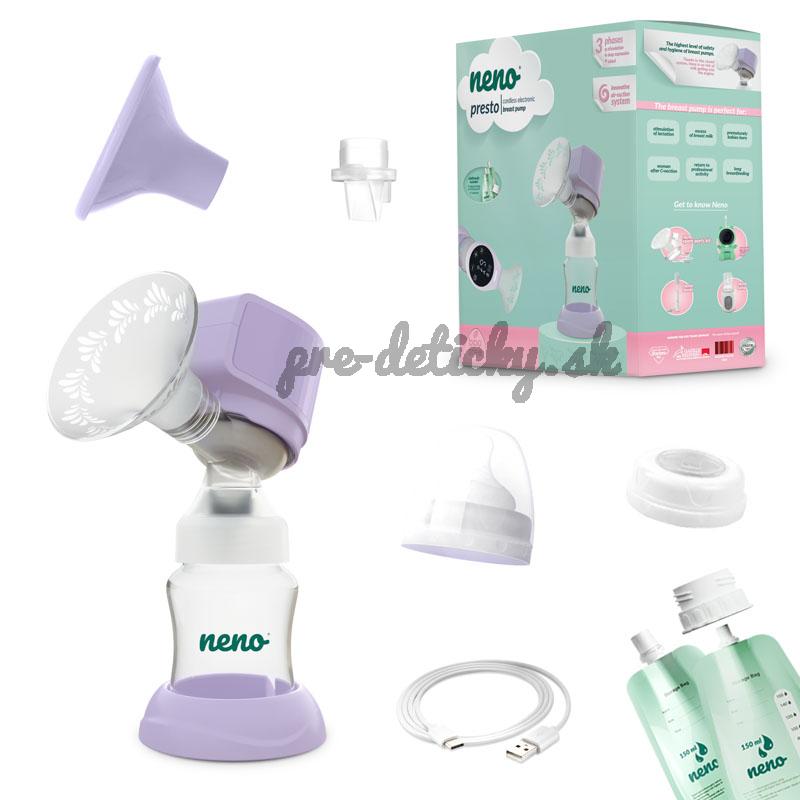 Neno Presto je elektrická odsávačka mlieka s 3 fázami a 9 úrovňami odsávania. Je to perfektný pomocník pre dojčiace ženy po prirodzenom pôrode alebo aj cisárskom reze.
