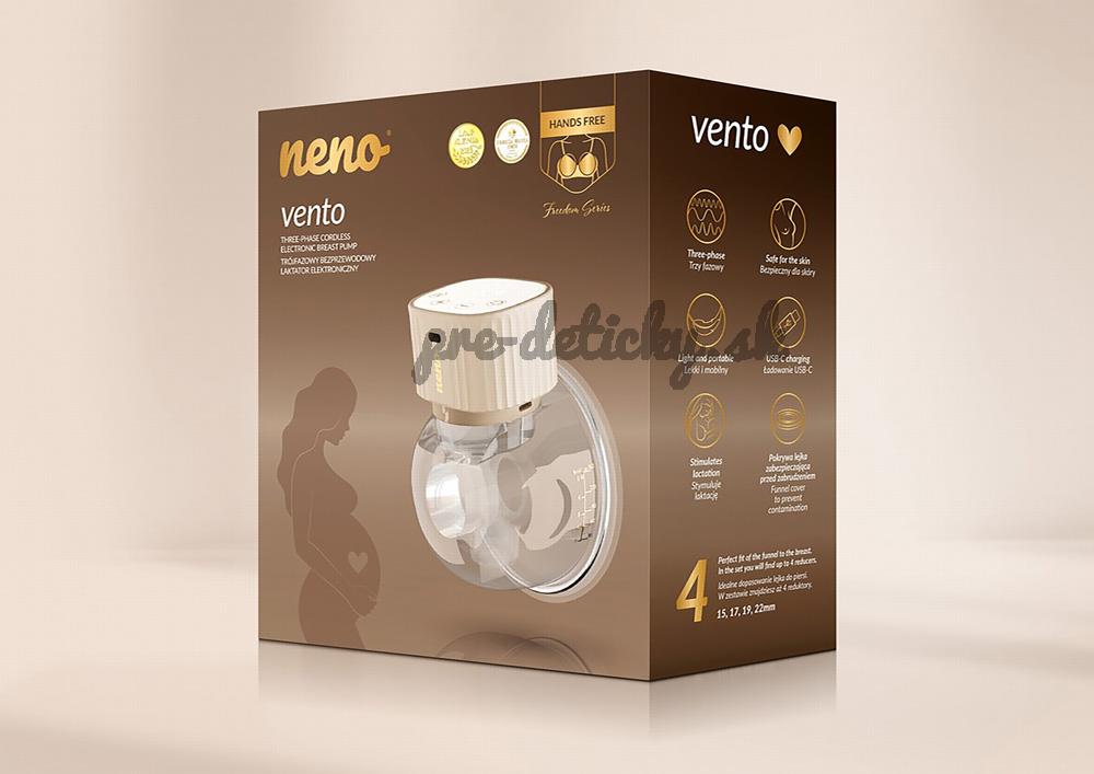 Elegantná bezdrôtová odsávačka mlieka priamo do podprsenky! Neno Vento je nová generácia odsávačky navrhnutá pre mamičky, ktoré si cenia pohodlie, slobodu pohybu a moderný dizajn. Vďaka svojmu diskrétnemu tvaru mušle sa pohodlne nosí priamo v podprsenke a umožňuje hands-free odsávanie kdekoľvek – doma, v práci či na cestách. Trojfázová technológia sania verne napodobňuje prirodzený rytmus dojčenia a pomáha podporiť tvorbu mlieka aj počas náročnejších období. Tichá prevádzka, jednoduché ovládanie a praktické príslušenstvo robia z modelu Vento skvelého pomocníka aj ideálny darček pre novú mamičku.