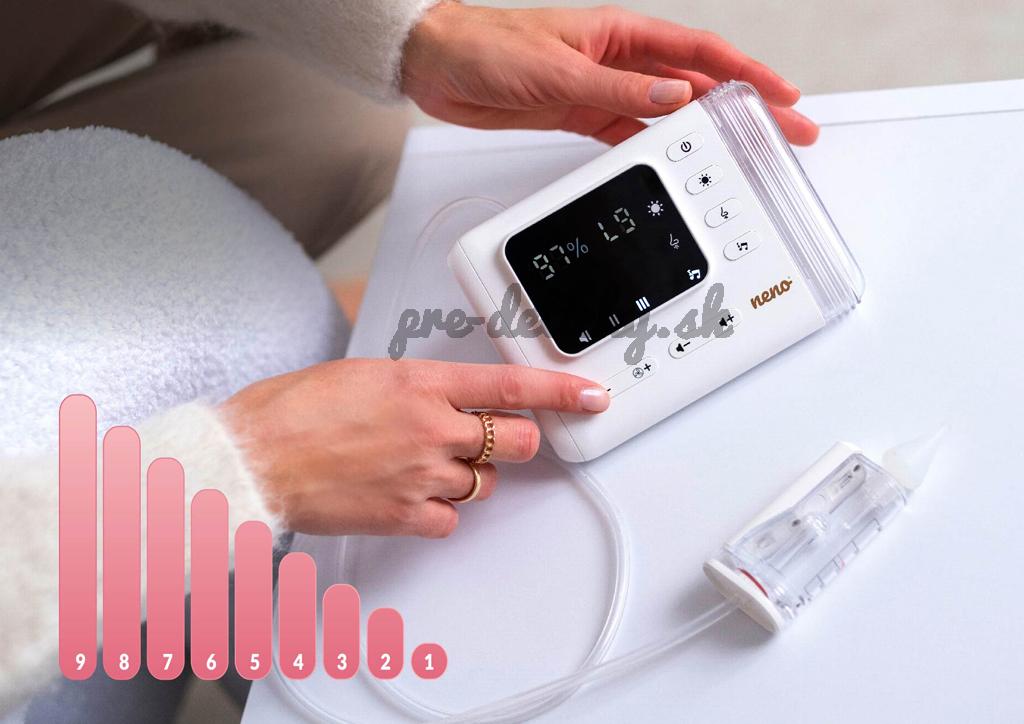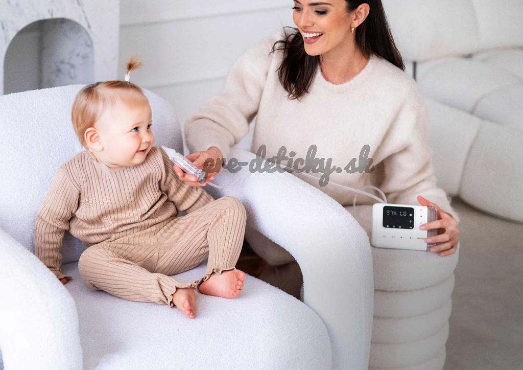 - Upokojujúce zvuky a melódie – biele šumy a jemná hudba pomáhajú dieťatku relaxovať počas odsávania