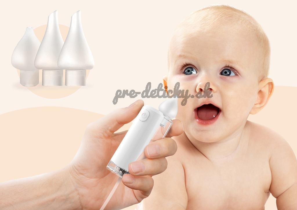 - 3 ergonomické silikónové nástavce – mäkké a šetrné, tvarované podľa fyziológie detského nosa