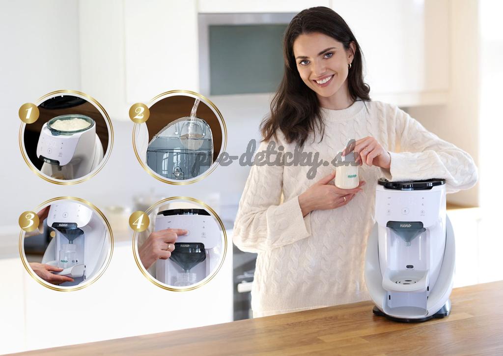 - Mlieko pripravené za sekundy: Prístroj pripraví dokonalú fľašu s mliekom za niekoľko sekúnd. Stačí nasypať upravené mlieko a studenú prevarenú vodu. Prístroj zabezpečí správnu teplotu bez zbytočného zmätku alebo neporiadku.