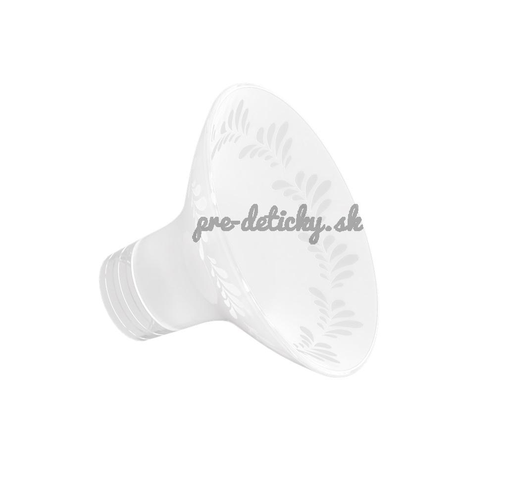 Prsná vložka má lievikovitý tvar vyrobený z jemného japonského silikónu, ktorý si pripevníte na prsia, aby ste stabilizovali odsávačku mlieka a umožňuje vám odsávať materské mlieko do fliaš. Podtlak vytvorený odsávačkou nasáva bradavku a stimuluje ju, rovnako ako to robí dieťa pri dojčení.