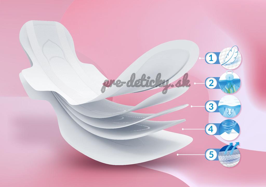 - Vysoká savosť – efektívne absorbujú vlhkosť a zabraňujú pretečeniu, vďaka čomu sa môžete cítiť sebavedomo po celý deň