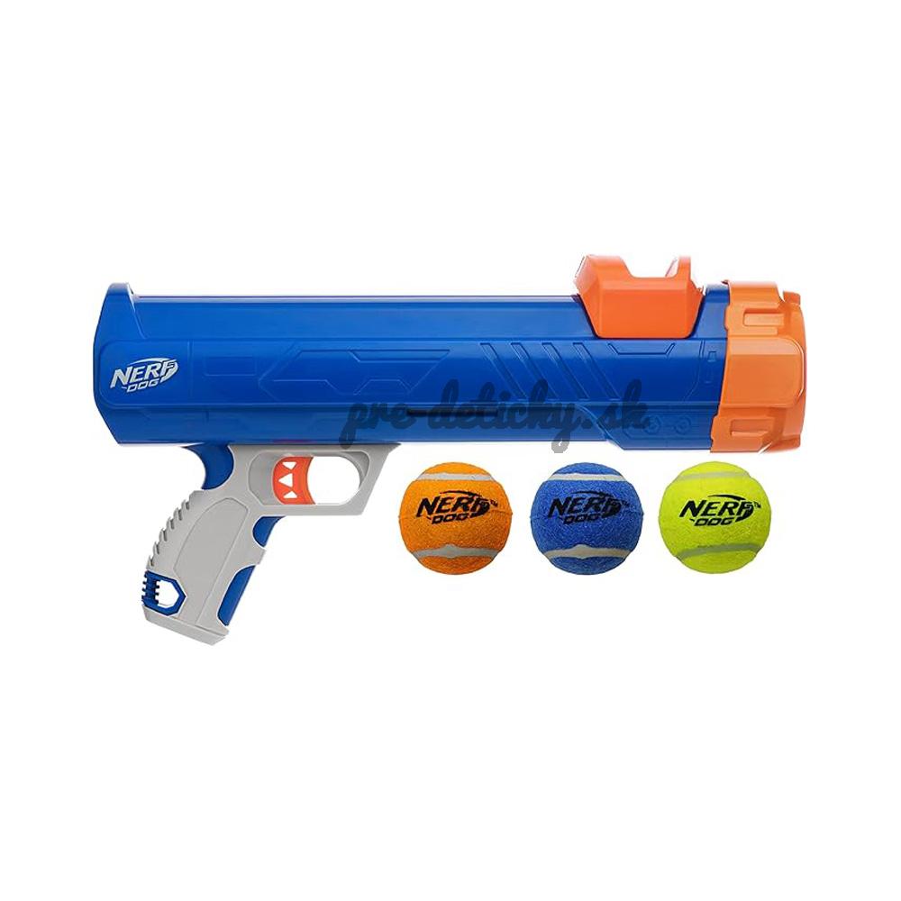 NERF DOG Hračka pre psov Blaster 30 cm bez klipu na loptičku + 3 ks pískacích tenisových loptičiek 5