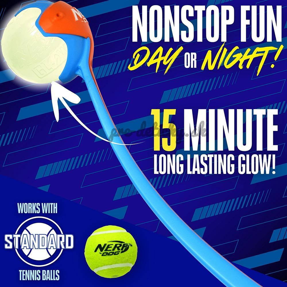 Vrhač loptičiek Nerf Dog Air Strike je navrhnutý pre dynamickú hru s aportom medzi majiteľom a psom - hádzanie, chytanie loptičky a interaktívnu zábavu. Vrhač loptičiek je vhodný, pokiaľ chcete predĺžiť dobu hrania až do večera alebo v prostredí so zníženou viditeľnosťou. Obsahuje vstavané LED osvetlenie, ktoré umožňuje loptičke alebo hračke „rozsvietiť sa“. Vďaka tomu Váš pes hračku uvidí za každej situácie.