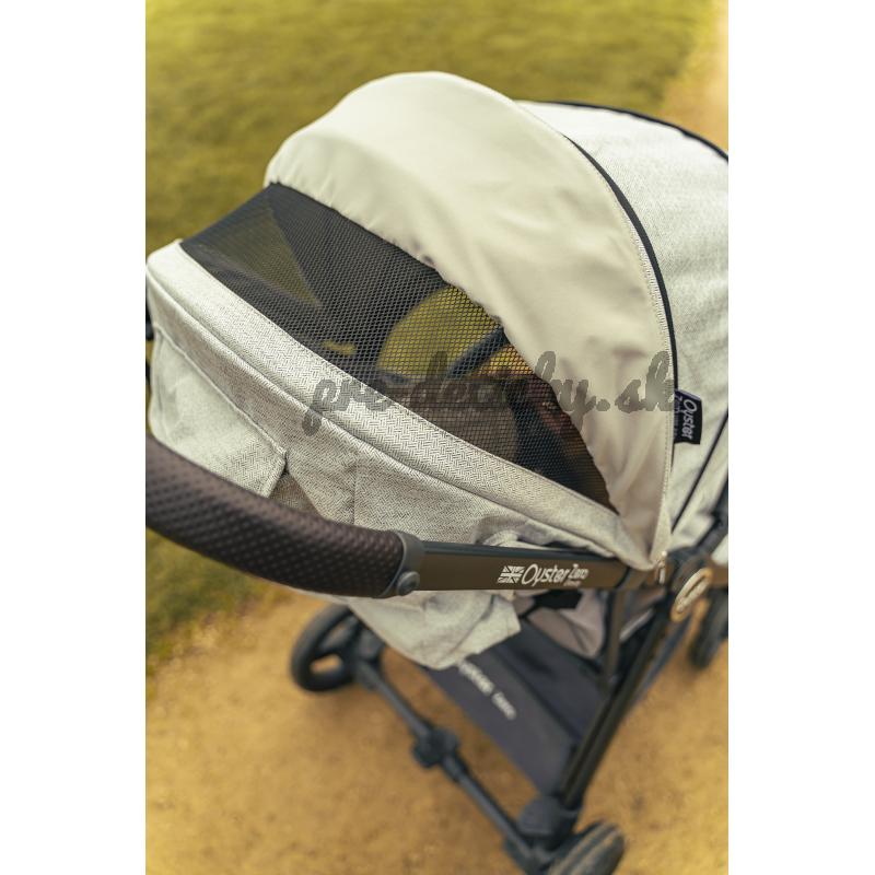 Oyster Zero Gravity ďalej zahŕňa 5-bodové bezpečnostné pásy s polstrovaním a veľkú striešku z textílie s ochranou UPF 50+, ktorú možno predĺžiť.