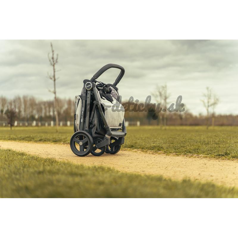 Vyznačuje sa novým dizajnom stredového kĺbu a rámom vo farbe City Grey, novým centrálnym brzdovým pedálom, priestrannou strieškou s odvetrávaním a samozrejme novým mechanizmom skladania, tzv. „gravity.“