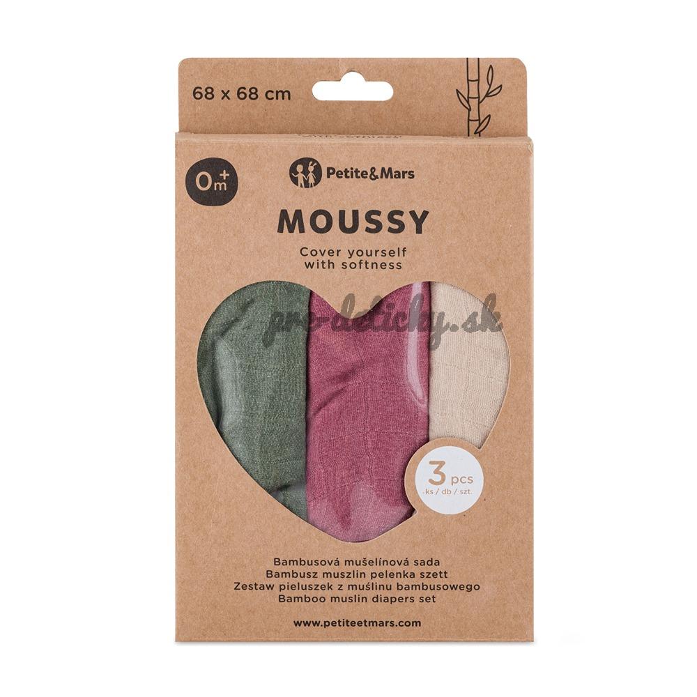 PETITE & MARS Sada plienok bambusová mušelínová 3ks Moussy Botanic Tones 68 x 68 cm