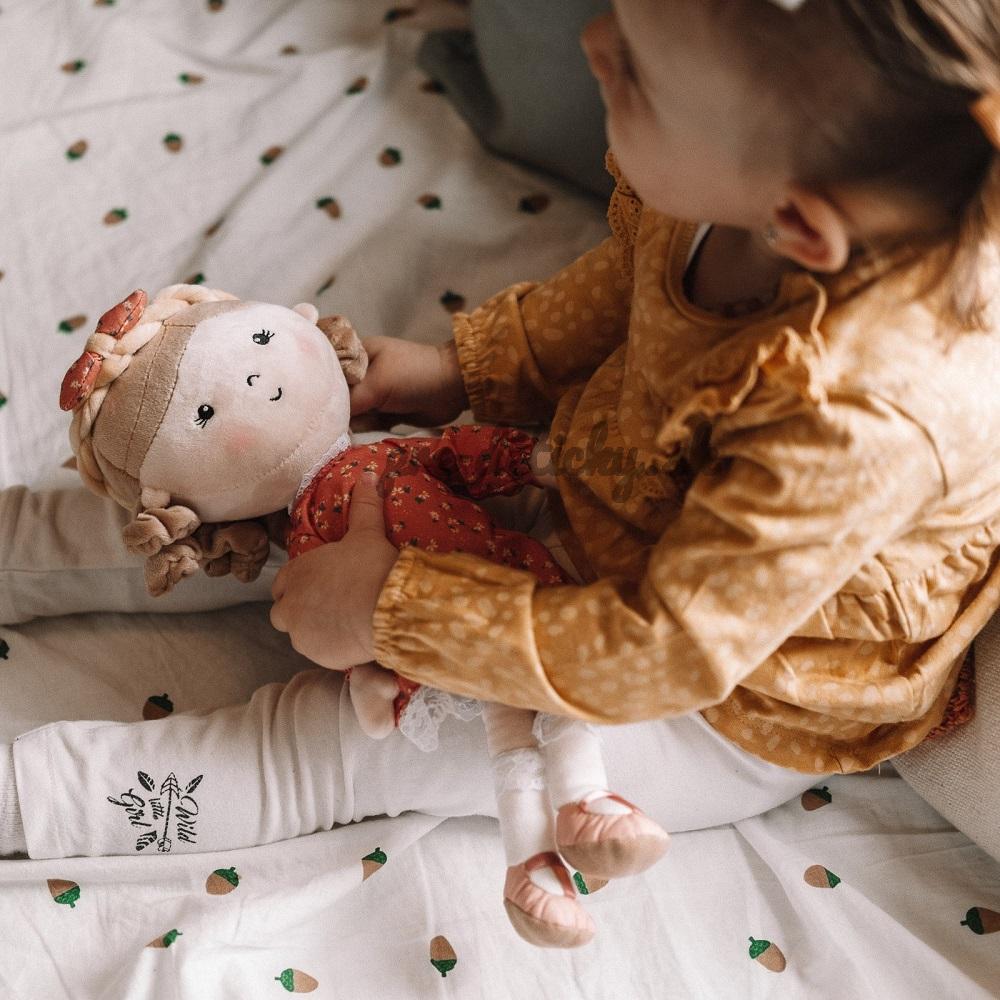 Bábika je z veľmi príjemného materiálu s krásnymi šatami, dokonalým účesom a čipkovanými detailami. Pokiaľ sa ušpiní, jednoducho ju môžete ručne vyprať na 30°. U detí podporuje predstavivosť a fantáziu a vďaka rôznym tvarom a textúram rozvíja kognitívne schopnosti.