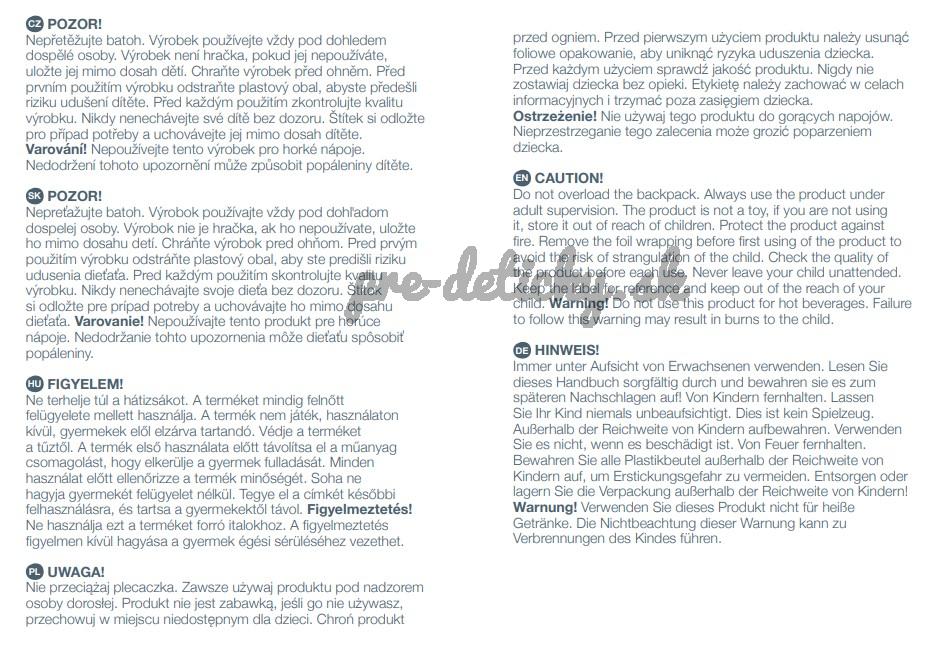 Batôžtek BACKIE je určený pre aktívne deti. Jeho veľkosť je prispôsobená postave malého dieťaťa, navyše má bezpečnostný prvok v podobe stabilizačného popruhu s prackou, ktorý zabraňuje skotúľaniu batohu z ramien.