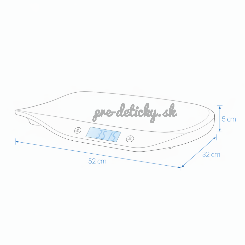 Vážiaca plocha je ergonomicky tvarovaná tak, aby dieťatko počas váženia ležalo bezpečne a pohodlne. Jemné zakrivenie pomáha udržať správnu polohu a zvyšuje komfort aj istotu rodiča pri každodennej manipulácii.