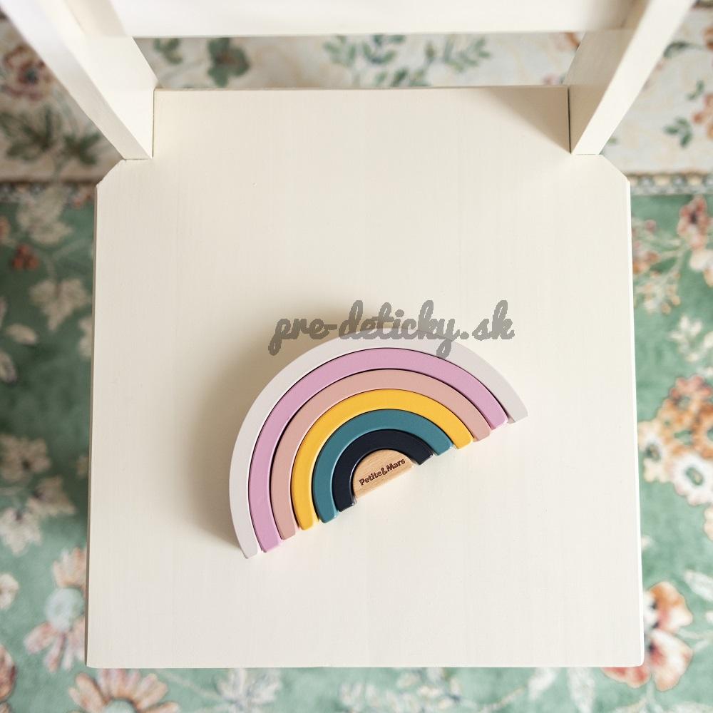 Drevená skladacia hračka STARDUST v tvare dúhy bude rozvíjať motorické zručnosti, schopnosť rozpoznávať tvary a farby a stimulovať vizuálnu a priestorovú predstavivosť.