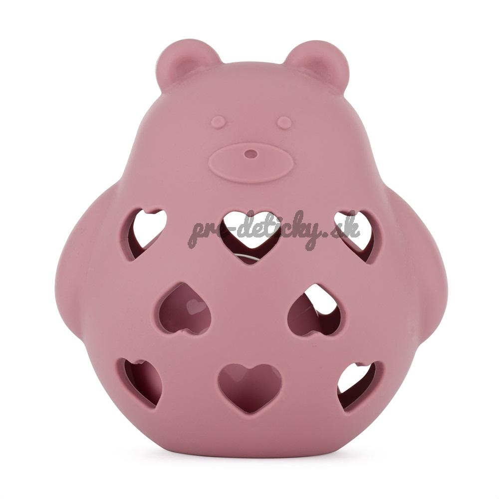 PETITE&MARS Hračka silikónová s hrkálkou Bear Basil Dusty Rose 0m+