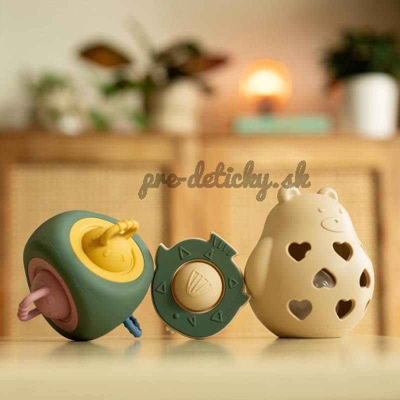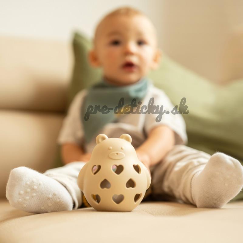 Tento rozkošný medvedík je ideálna hrkálka a hryzačka v jednom! Vyrobený zo 100% potravinárskeho silikónu, je bezpečný a príjemný pre bábätká už od narodenia. Mäkký silikón upokojuje boľavé ďasná pri prerezávaní zúbkov, zatiaľ čo jemné hrkanie upúta pozornosť a stimuluje sluch dieťatka. Hračka Bear Basil je navrhnutá tak, aby podporovala rozvoj motoriky – ľahko sa drží aj v malých rúčkach. Je odolná, ľahká a jednoducho sa čistí, čo z nej robí skvelú voľbu pre rodičov, ktorí chcú spojiť zábavu s praktickosťou.