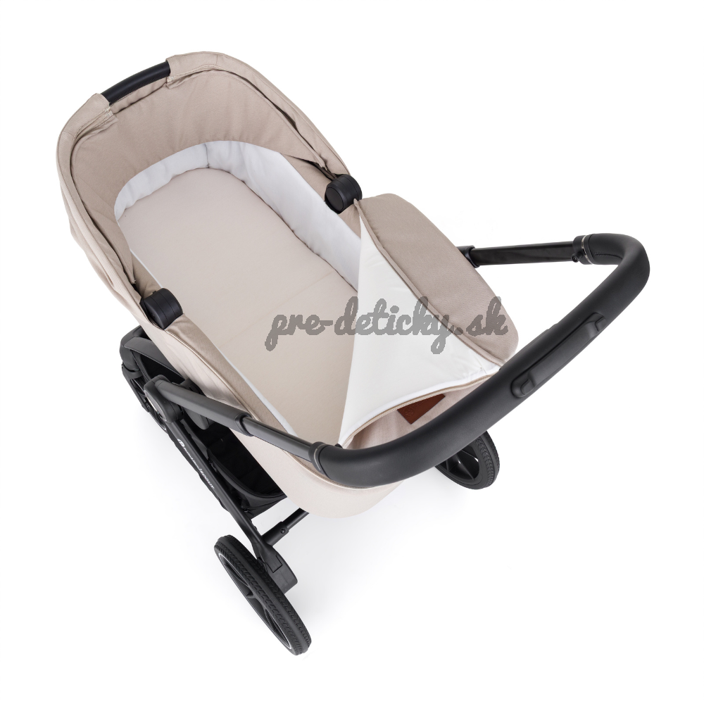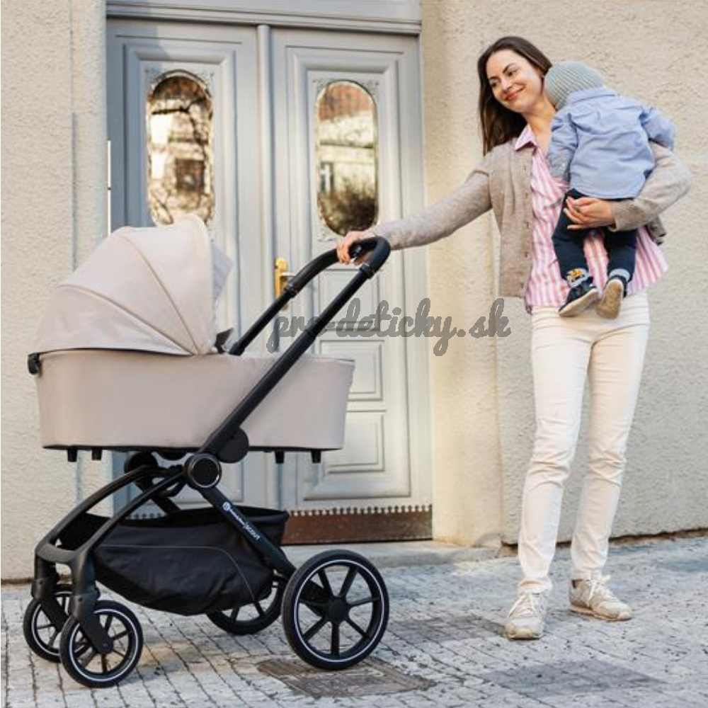 Vďaka jednoduchému skladaniu a premyslenému naklikávaciemu systému s poistkou zvládnete prechod medzi vaničkou a športovou časťou rýchlo a bezpečne. Konštrukcia je pevná, kočík sa výborne ovláda a v každodennom tempe oceníte aj jednoduchú manipuláciu. Veľké PU kolesá vpredu aj vzadu spolu s miernym odpružením zabezpečujú pohodlnú jazdu aj na nerovnejšom povrchu.