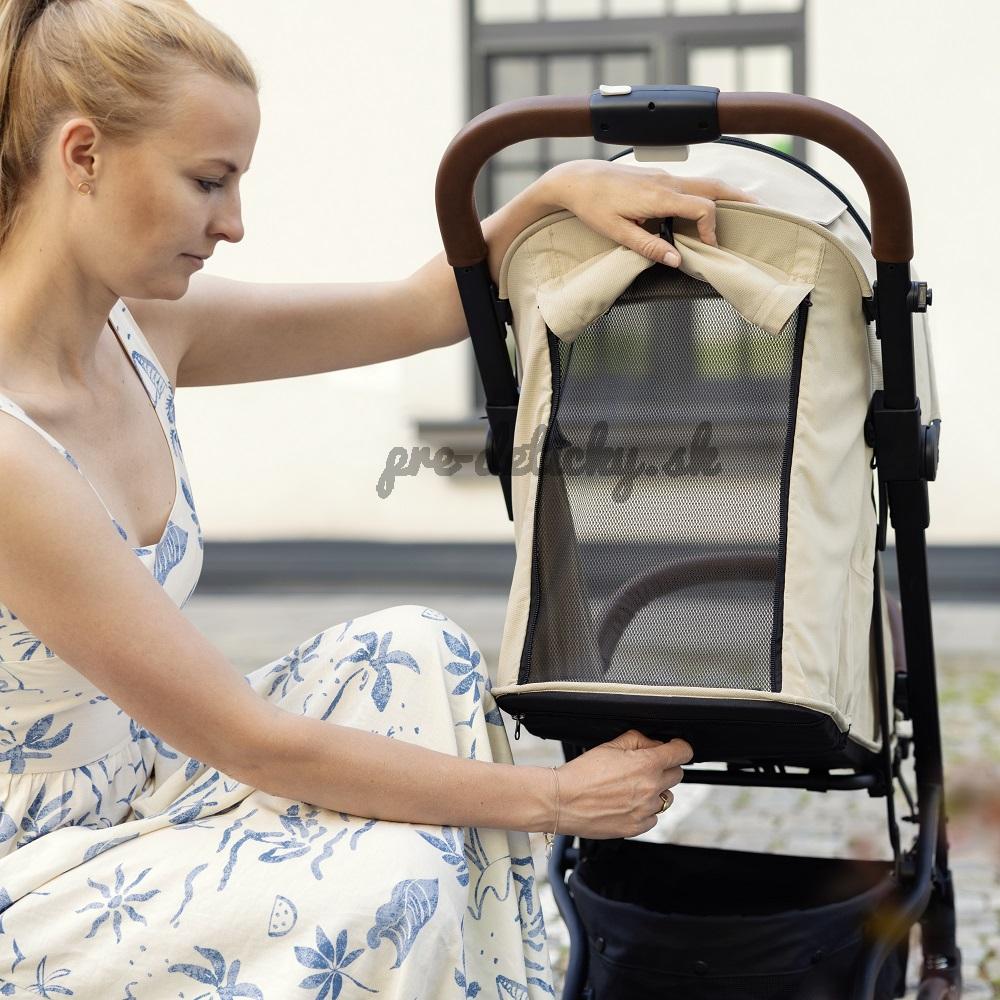 V lete oceníte odvetranie kočíka, či už malým sieťovaným okienkom na strieške, cez ktoré dieťatko môžete počas kočíkovania kontrolovať. Alebo jednoducho odzipsujete a vyrolujete poťah na zadnej strane kočíka a pod ním nájdete priestrannú sieťku, ktorá krásne prevzdušní kočík počas horúcich letných dní.
