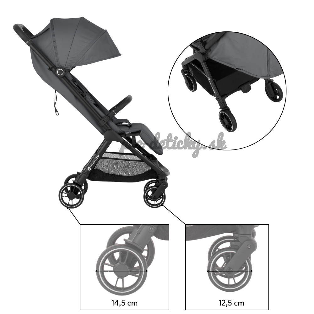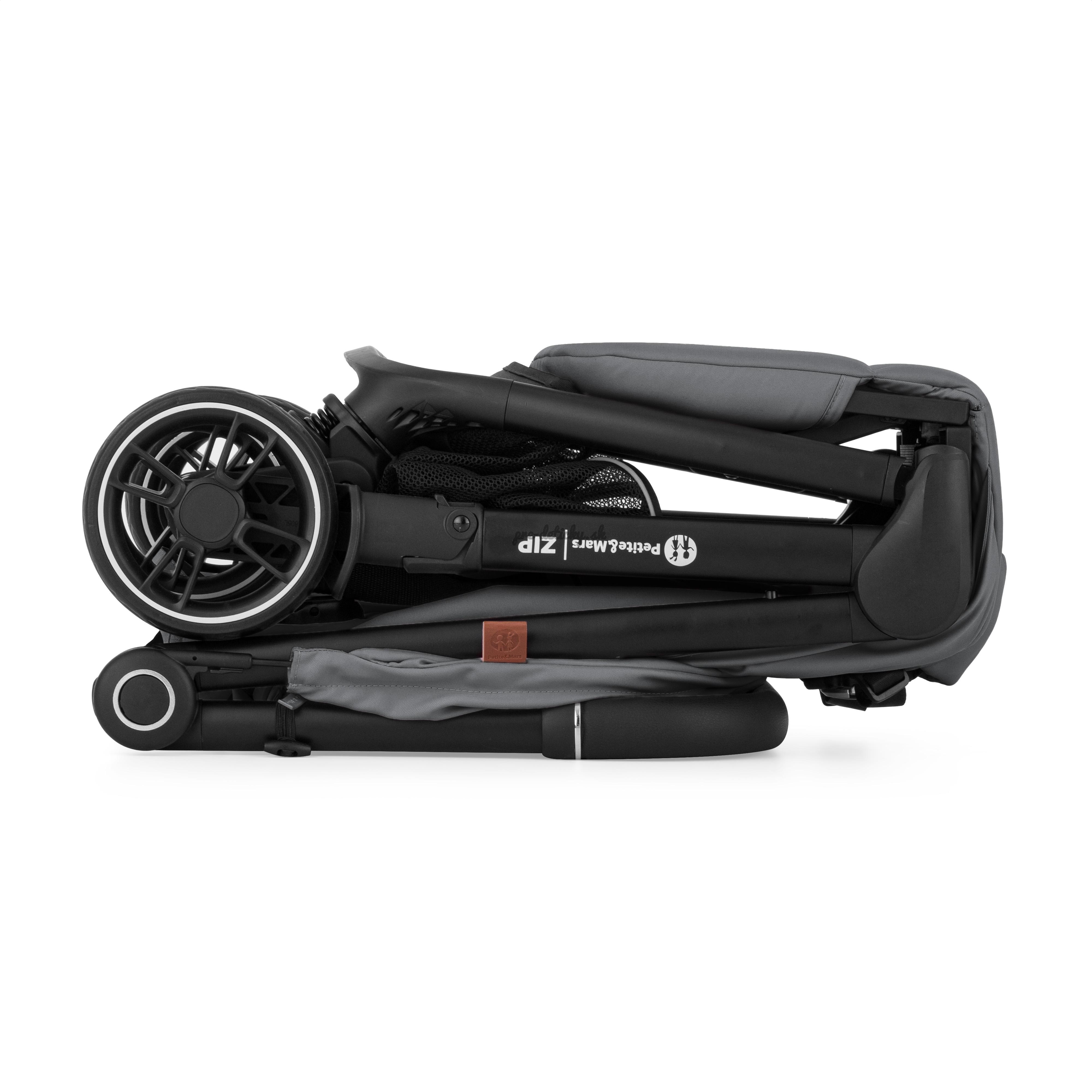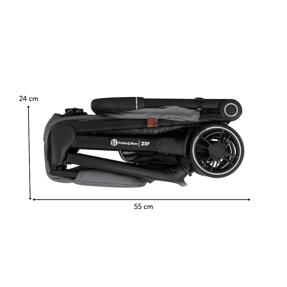 ZIP patrí medzi kočíky s kabínkovým rozmerom po zložení, takže ho môžete bez obáv vziať na palubu lietadla alebo uložiť do kufra aj menšieho auta. S hmotnosťou iba 7 kg ho bez problémov prenesiete v jednej ruke, pričom druhou môžete viesť dieťa.