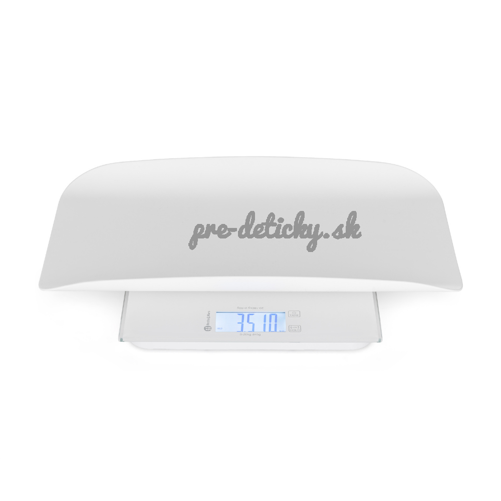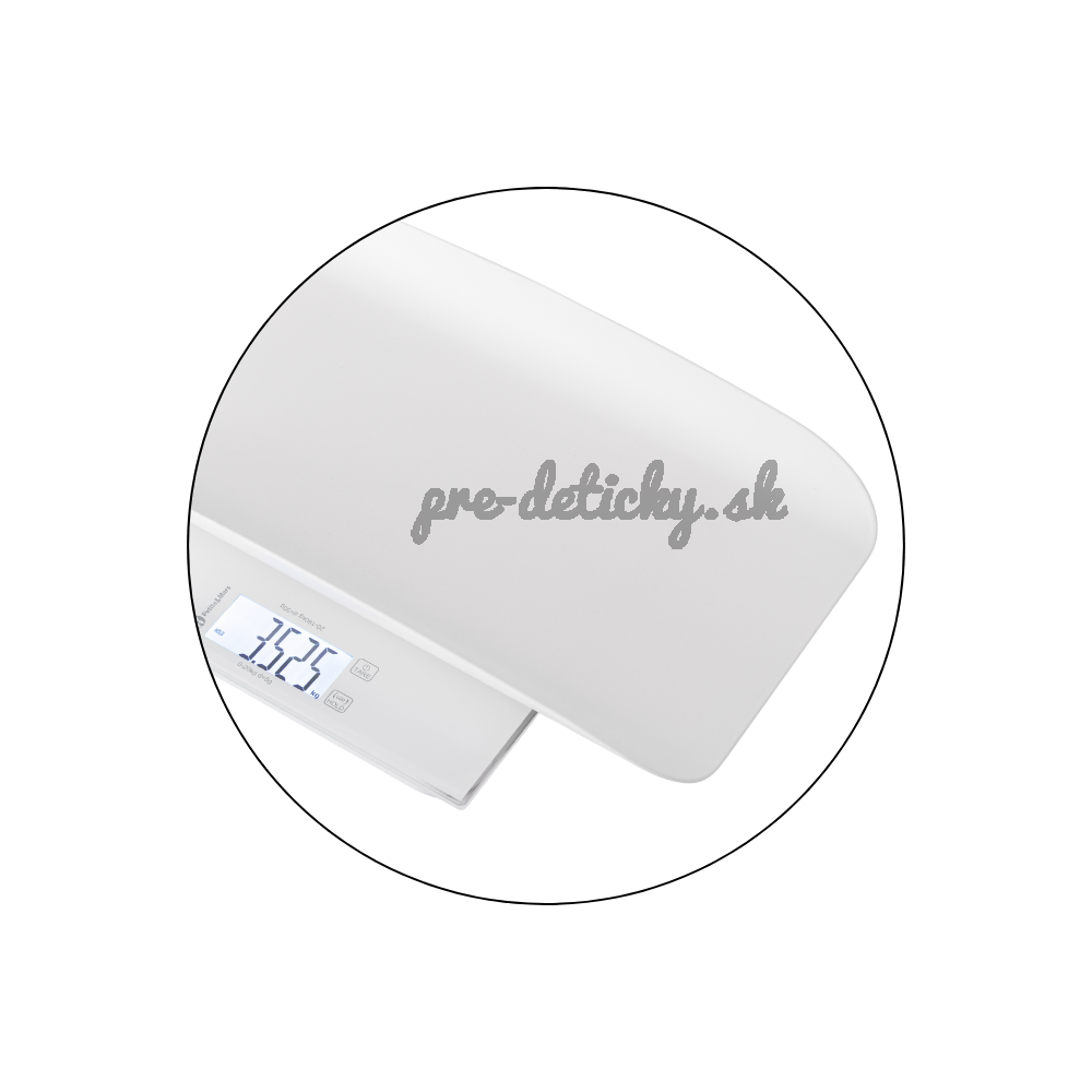 Na váženie najmenších slúži odnímateľný plastový podnos, ktorý jednoducho nasadíte na váhu. Poskytuje bábätku dostatok priestoru aj stability počas váženia a rodičom prináša väčšiu istotu pri každodennom používaní. Váha ponúka presné meranie v jednotkách kg/lb/oz a obsahuje funkciu HOLD (automatickú/manuálnu), ktorá po meraní zobrazí stabilnú hodnotu bez potreby opakovaného váženia.