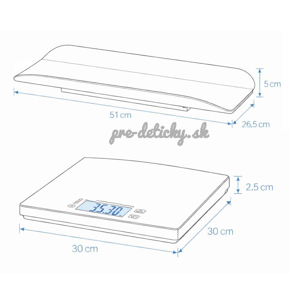 • Odnímateľná plastová vanička na váženie dojčiat