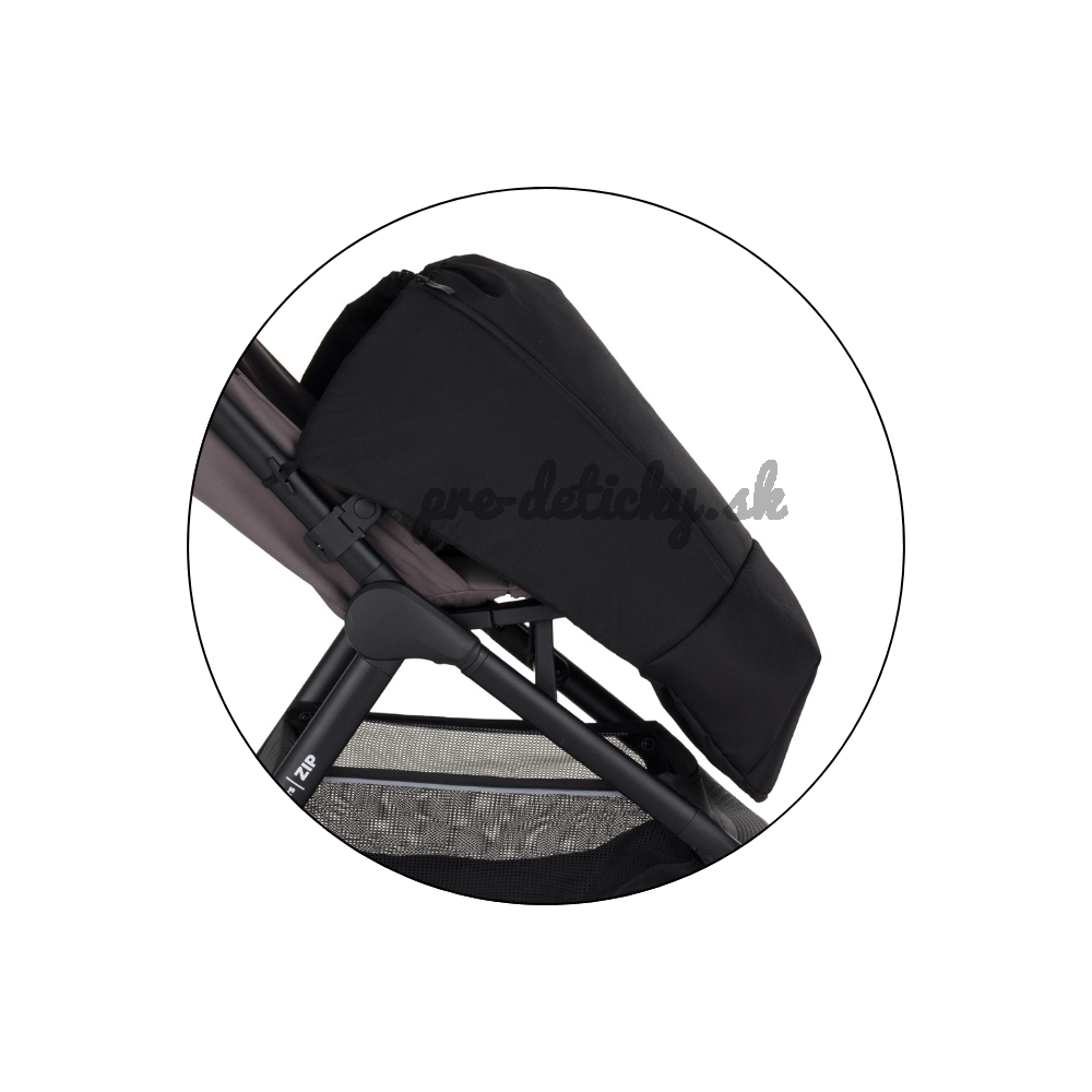 Praktické dva zipsy uľahčujú manipuláciu, umožňujú rýchle odvetranie alebo pohodlné vybratie dieťaťa bez potreby úplného odopínania. Uchytenie je riešené pomocou elastických pútok a zapínania, ktoré zabezpečujú pevné a stabilné pripevnenie ku konštrukcii kočíka.
